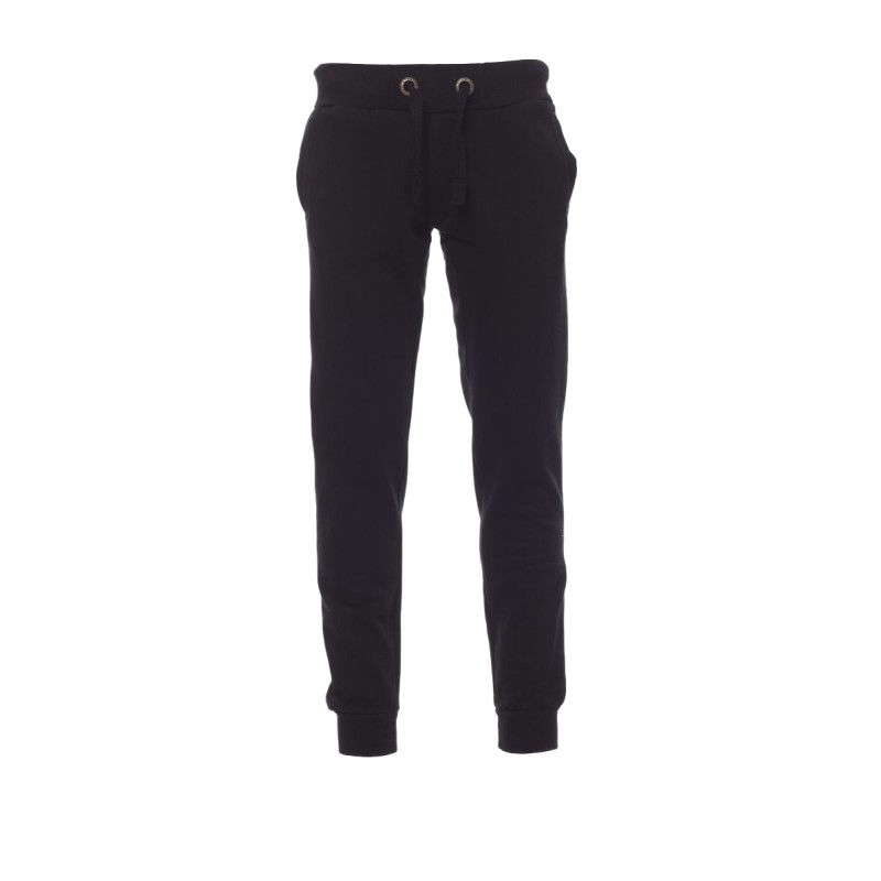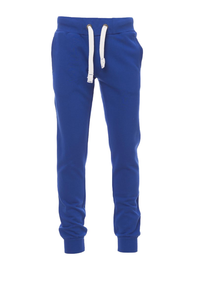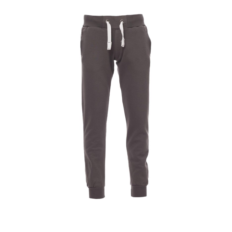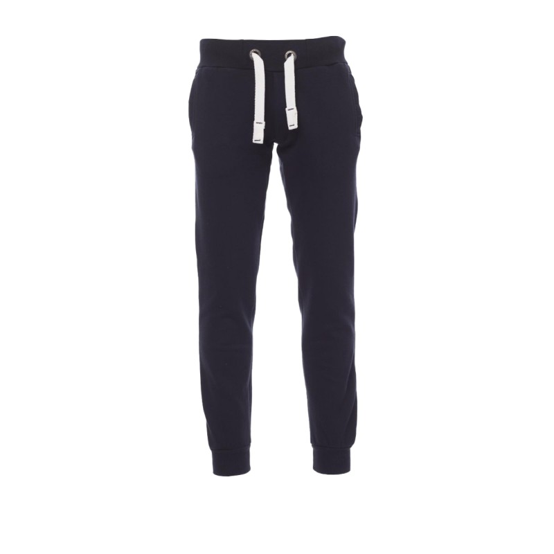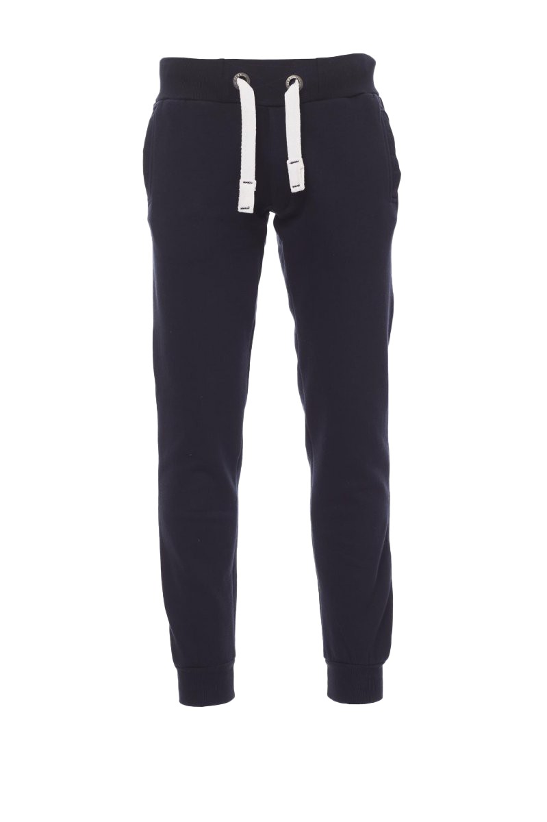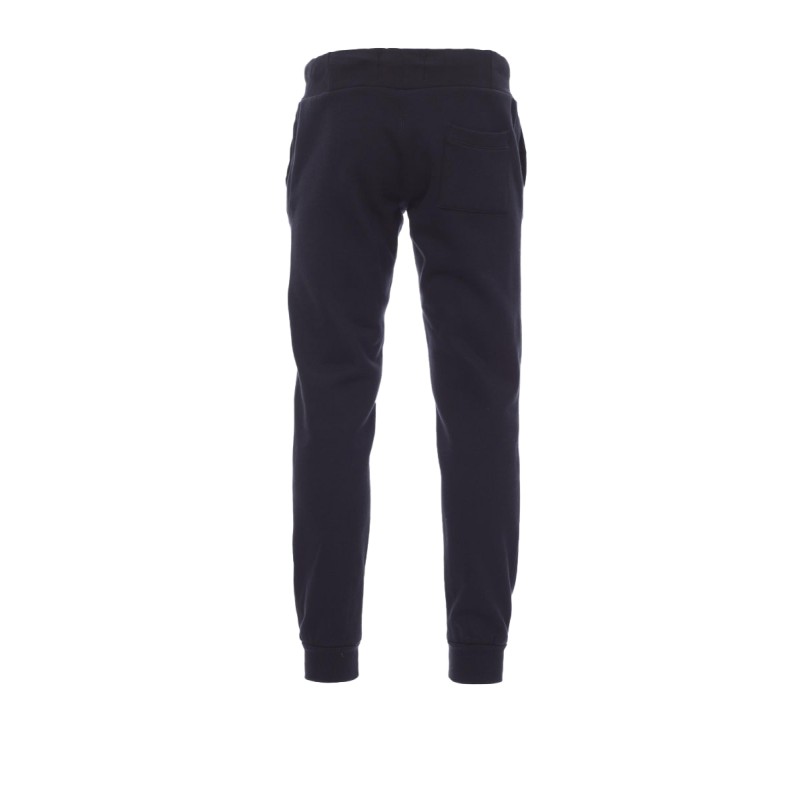 Pantalon en sweat pour homme avec bord côtes élastique à la taille et au bas des jambes, coulisse avec cordon blanc à coutures en contraste et anneaux en métal, deux poches sur le devant avec bord côtes et une petite poche arrière, zip avec patte et coutures renforcées.