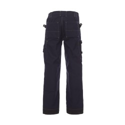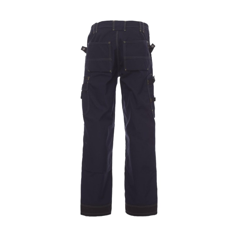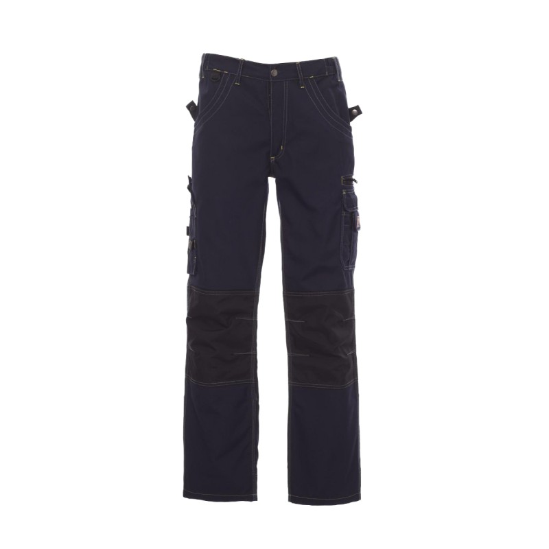 Pantalon homme multi-saison avec porte-genouillères en Cordura, élastiques latéraux et passants à la taille, fermeture par zip et bouton en métal, deux poches avant avec intérieur dans le même matériau que le pantalon, deux poches latérales multifonction avec porte-badge détachable et refermable, une poche avec zip, deux poches arrière ouvertes, porte-marteau . Inserts et surpiqûres en contraste, triple couture intérieur et extérieur jambes.