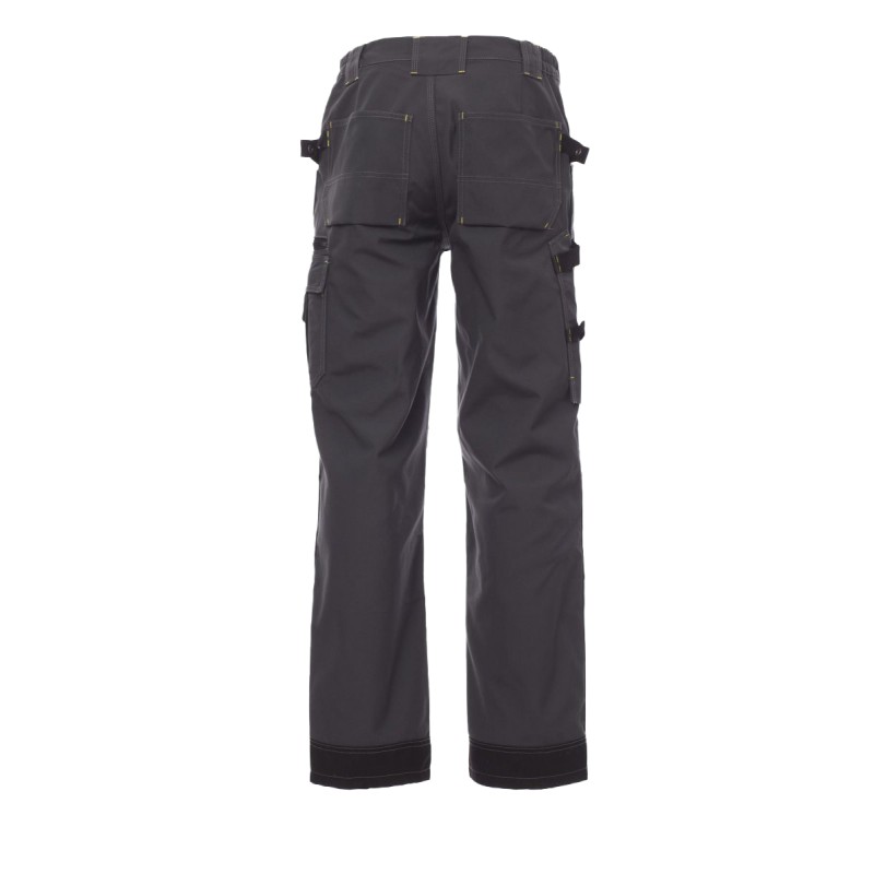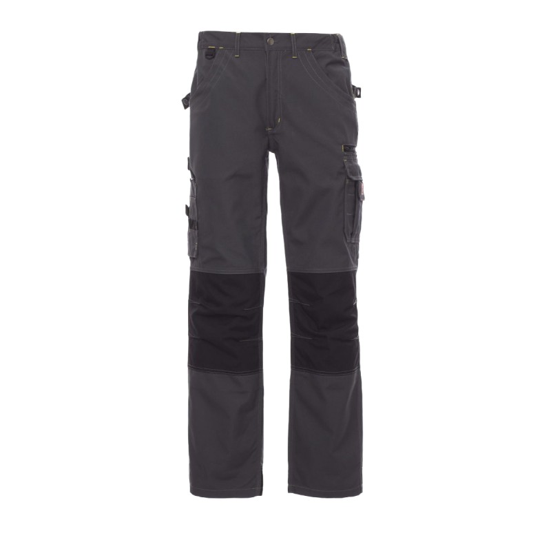 Pantalon homme multi-saison avec porte-genouillères en Cordura, élastiques latéraux et passants à la taille, fermeture par zip et bouton en métal, deux poches avant avec intérieur dans le même matériau que le pantalon, deux poches latérales multifonction avec porte-badge détachable et refermable, une poche avec zip, deux poches arrière ouvertes, porte-marteau . Inserts et surpiqûres en contraste, triple couture intérieur et extérieur jambes.