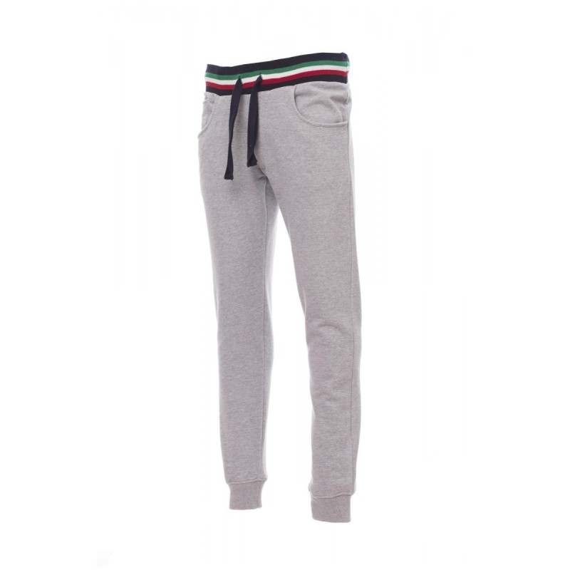 Pantalon multi-saison en sweat avec bord côtes élastique à la taille et au bas des jambes, coulisse à la taille, deux poches sur le devant et une petite poche, zip avec patte.