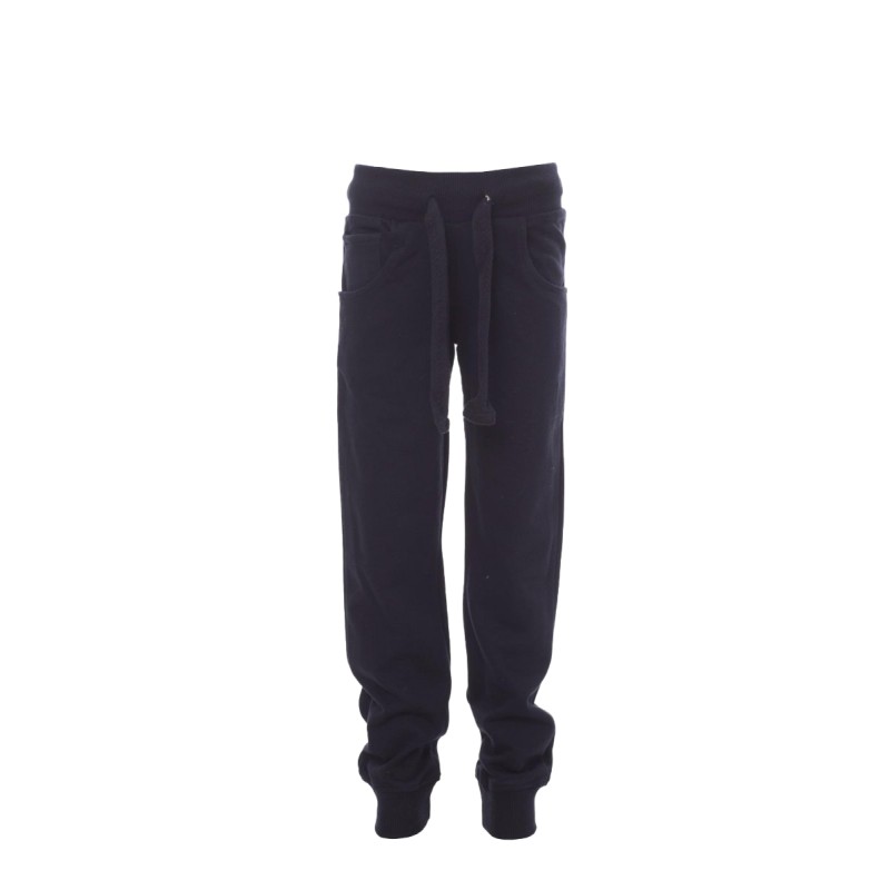 Pantalon enfant multi-saison en sweat avec bord côtes élastique à la taille et au bas des jambes, cordon coulissé à la taille, deux poches sur le devant et une petite poche, zip avec patte