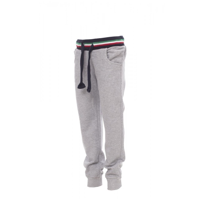 Pantalon enfant multi-saison en sweat avec bord côtes élastique à la taille et au bas des jambes, cordon coulissé à la taille, deux poches sur le devant et une petite poche, zip avec patte