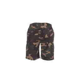 Bermuda homme, élastiques latéraux et passants à la taille, fermeture éclair et bouton en métal de fermeture, deux poches de coupe classique sur le devant, deux poches latérales avec rabat et boutons-pression, une poche à fermeture éclair côté gauche, un porte-mètre escamotable côté droit, deux poches arrière passepoilées avec boutonnière et bouton.