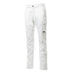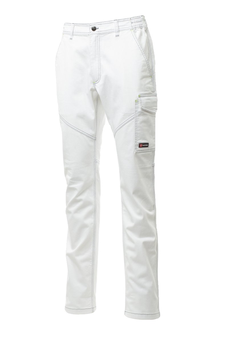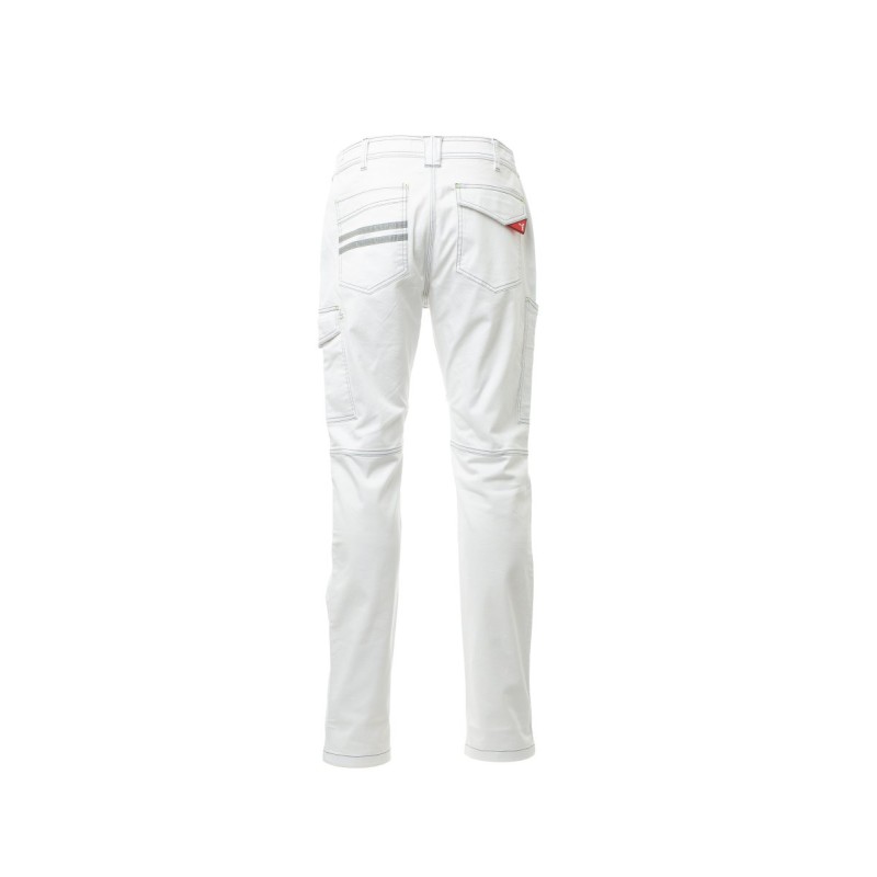 Pantalon multi-saison unisexe stretch avec élastiques latéraux et passants à la taille, fermeture par zip et bouton en plastique, deux poches de coupe classique sur le devant, une poche latérale LOCK SYSTEM, un porte-mètre, deux poches arrière, une ouverte et une avec rabat et velcro, coutures entrejambe et intérieur jambe à triple aiguille. Inserts et surpiqûres en contraste, bandes réfléchissantes sur poche arrière, triple couture. Bouton à clou pour la couleur blanche.