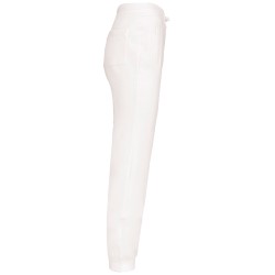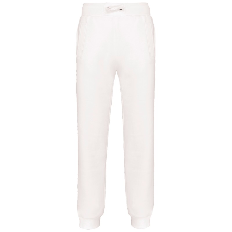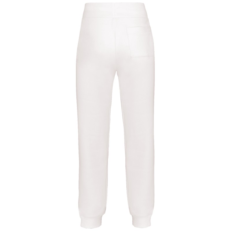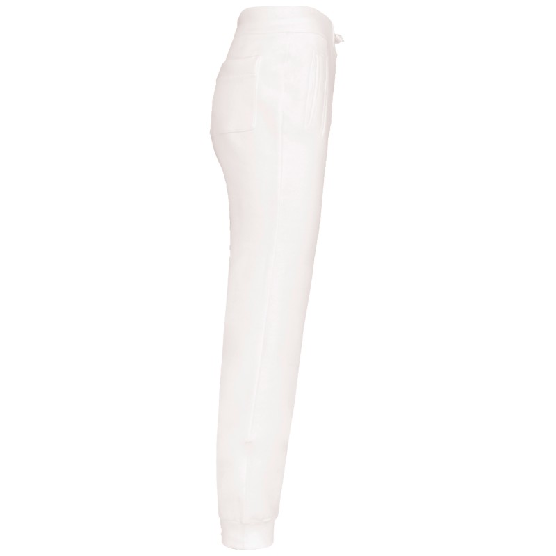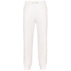 80% coton / 20% polyester. Coton peigné. Molleton gratté. 2 poches côtés et 1 poche arrière plaquée. Large bord-côte et lien de serrage à la taille. Finition bord-côte bas de jambe.