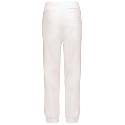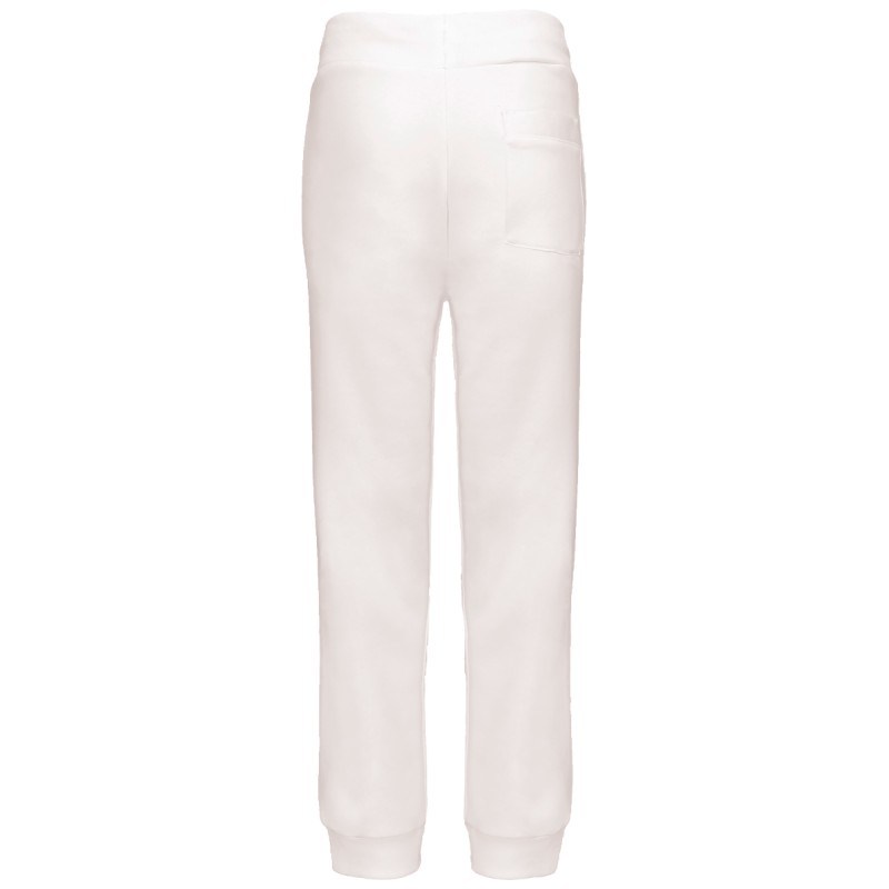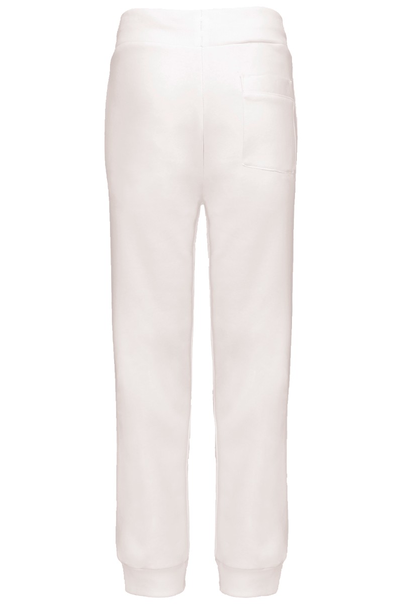 80% coton / 20% polyester. Coton peigné. Molleton gratté. 2 poches côtés et 1 poche arrière plaquée. Large bord-côte et lien de serrage à la taille. Finition bord-côte 1x1 bas de jambe.