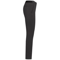 64% polyester / 34% viscose / 2% élasthanne. Pantalon coupe ajustée. 2 poches italiennes devant et 2 poches arrière passepoilées. Fermeture braguette zippée avec crochet et bouton sous patte. Ceinture avec bande élastiquée au dos pour un confort optimal. Longueur entrejambe : 78cm. Bas de pantalon avec ourlet invisible.