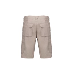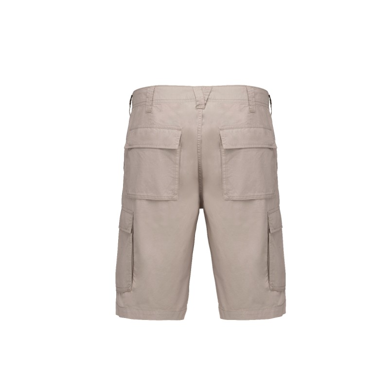 100% coton. Tissu popeline lavé pour un aspect souple et confortable. Intérieur ceinture contrasté avec cordon de serrage. Fermeture zippée et bouton pression. 2 poches italiennes devant dont une avec 1 poche monnaie. 2 poches à soufflet avec rabat et bouton pression à l'arrière et côtés.
