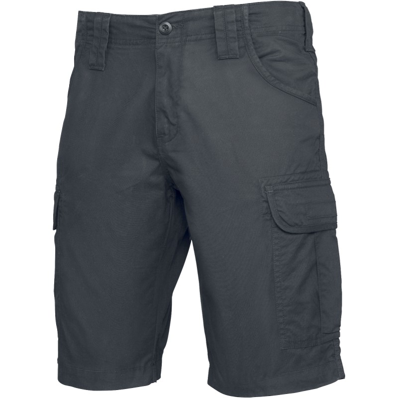 100% coton. Coton sergé. Lavage aux enzymes. Fermeture zippée avec bouton. 4 poches côtés dont 2 plaquées avec rabat et bouton pression. 2 poches arrière avec rabat et bouton pression. Finition bordée sur poches. Ce produit a subi un traitement spécial et présente un aspect volontairement vieilli. Ce procédé de fabrication implique des variations de couleurs d'un produit à l'autre et rend chaque pièce unique.