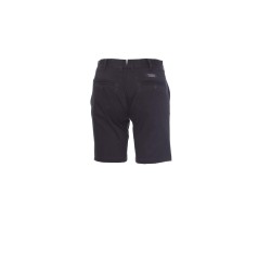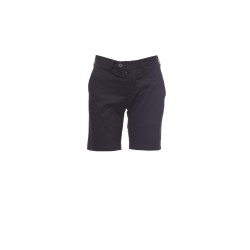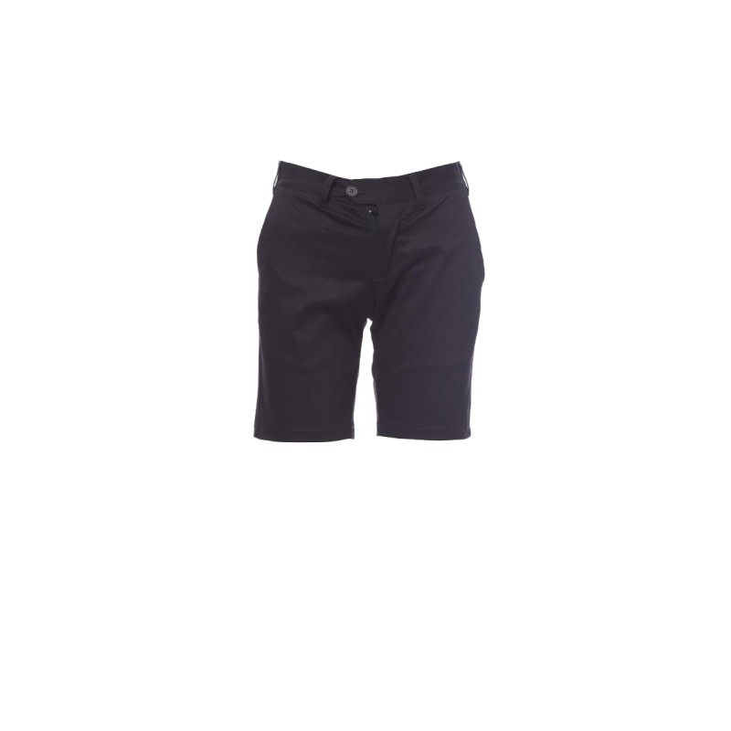 Bermuda classique pour femme, fermeture par zip et bouton, taille avec passants, deux poches cavalières sur le devant et deux poches arrière passepoilées avec bouton.