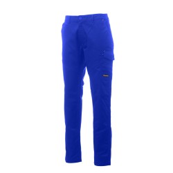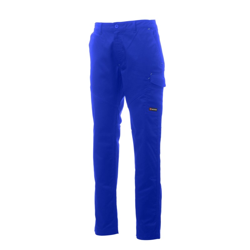 Pantalon multi-saison unisexe, élastiques latéraux et passants à la taille, fermeture par zip et bouton en plastique, deux poches de coupe classique sur le devant, une poche latérale LOCK SYSTEM, un porte-mètre, deux poches arrière, une ouverte et une avec rabat et velcro, surpiqûres assortis, bandes réfléchissantes sur poche arrière, triples coutures. Bouton à clou pour la couleur blanche.