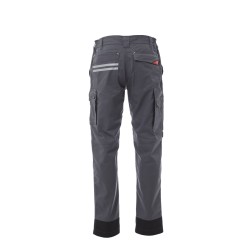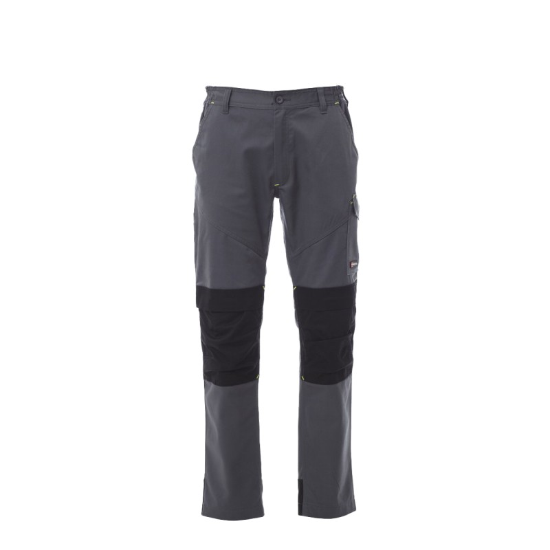 Pantalon unisexe, multi-saison avec poches genouillères, élastiques latéraux et passants à la taille, fermeture éclair et bouton en plastique, deux poches de coupe classique sur le devant, une poche latérale LOCK SYSTEM, un porte-mètre et un porte-smartphone, deux poches arrière, une ouverte et une avec rabat et velcro, inserts et surpiqûres en contraste, passepoils réfléchissants sur poche arrière, triples coutures.