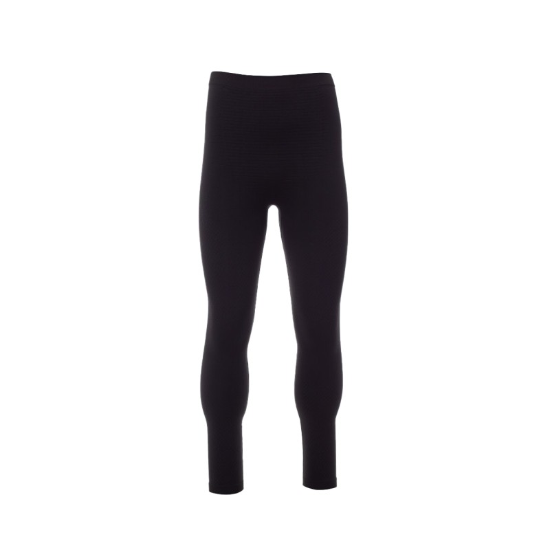 Pantalons thermiques pour homme, avec taille et bas de jambes en côtes élastiques. Nervures sur le devant et le dos, insert sous l'entrejambe, pour une coupe anatomique parfaite. Tissages sur le devant et dos de jambes pour assurer une transpiration correcte dans les zones musculaires.