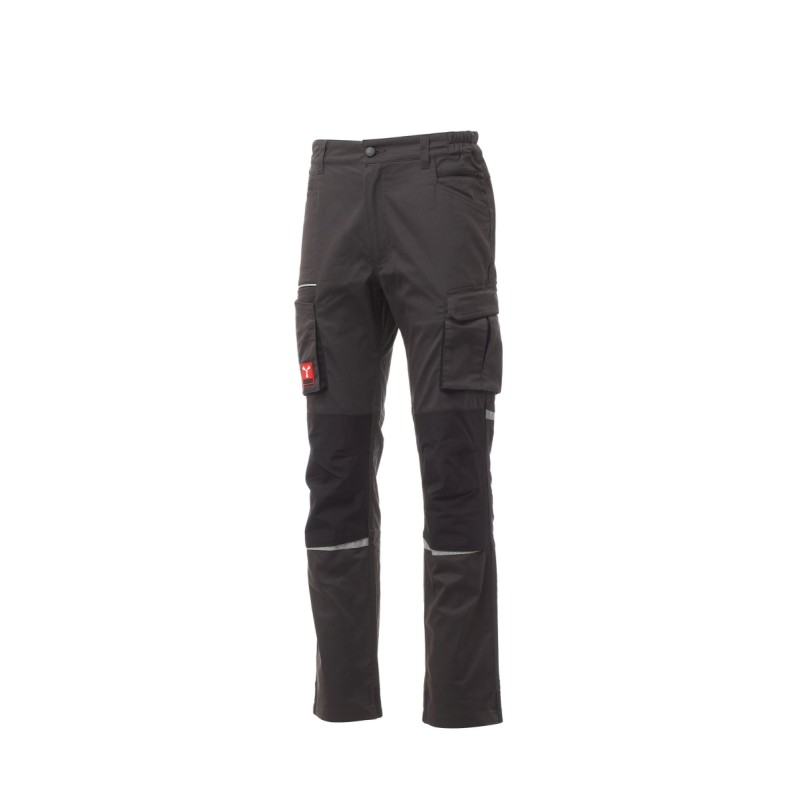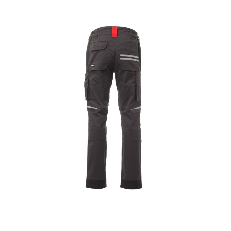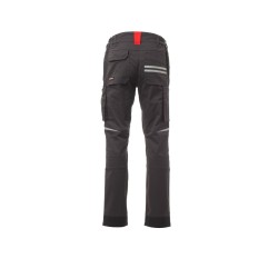 Pantalon unisexe, stretch, multi-saison, à élastiques latéraux et passants à la taille, fermeture à zip et bouton personnalisé. Doté sur le devant de deux poches profilées, une petite poche porte-monnaie à droite, une petite poche de sécurité fermée par zip à gauche. L'avant de la jambe gauche comporte une poche à soufflet avec rabat fermé par velcro et un porte-badge. L'avant de la jambe droite comporte : une poche porte-téléphone à liseré rétroréfléchissant et une poche à soufflet. Les deux jambes sont dotées de porte-genouillères en nylon Oxford 500D, (à ouverture par le bas) et d'inserts rétroréfléchissants indiquant l'ouverture. L'arrière comporte : une poche à rabat fermée par velcro et une poche sans rabat pourvue de 2 bandes rétroréfléchissantes, une poche porte-mètre (jambe droite), des inserts rétroréfléchissants au niveau du genou (sur les deux jambes), talonnette en tissu en contraste (sur les deux jambes). Le vêtement est également doté de : - coutures à triple aiguilles sur l'entrejambe, l'intérieur et l'extérieur jambe - baguettes de renfort en contraste en plusieurs points. Les tailles (italiennes) centrales 48-50-52 ont un intérieur jambe habituel de 82 cm.
