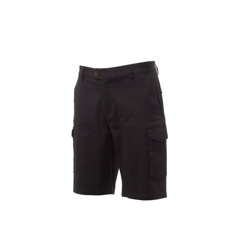 Bermuda pour homme, fermeture avec zip et patte de boutonnage décalée avec 2 boutons, 2 poches cavalières, 2 poches appliquées sur les côtés avec rabat et bouton automatique, passants de style sartorial à la taille, 2 poches arrière avec rabat et bouton automatique.