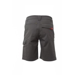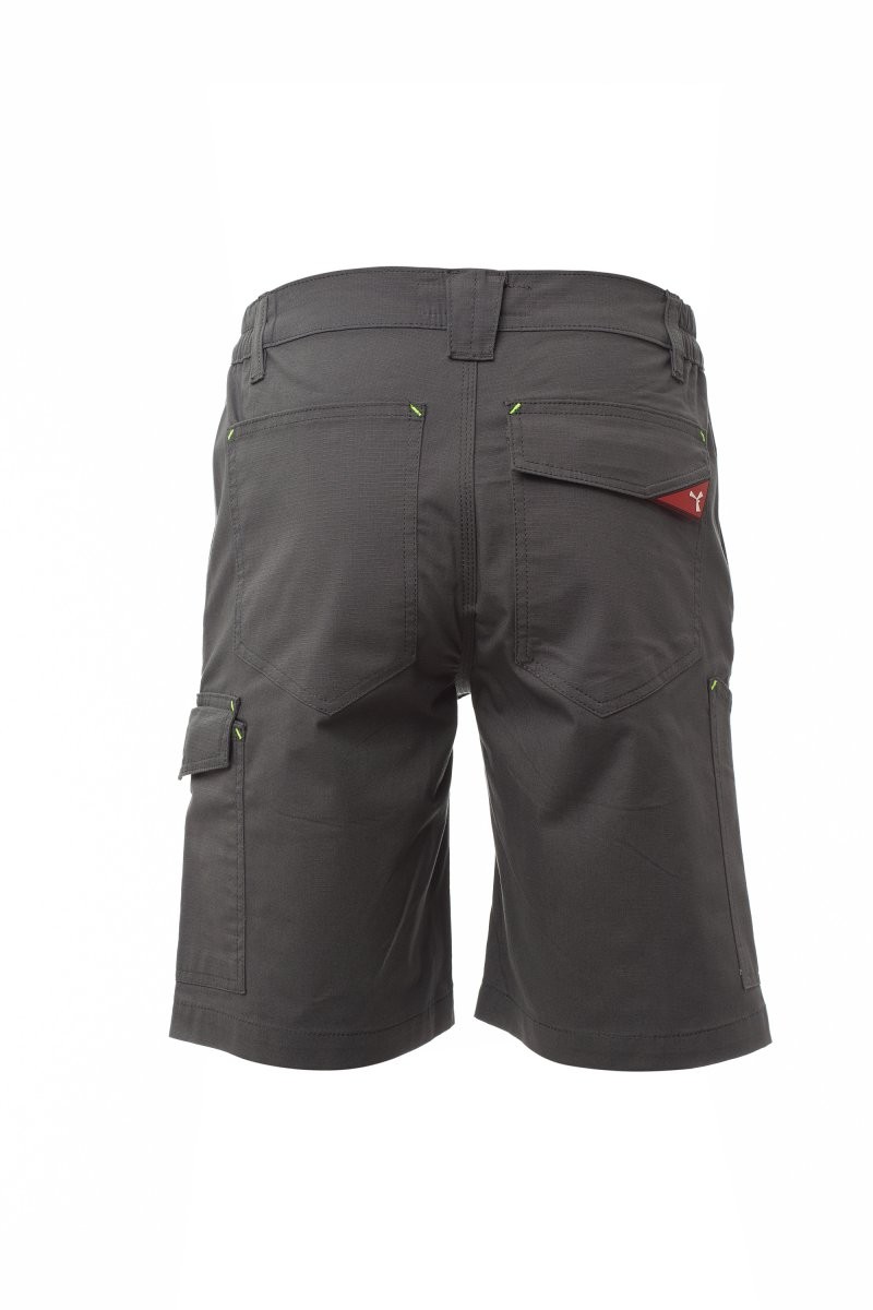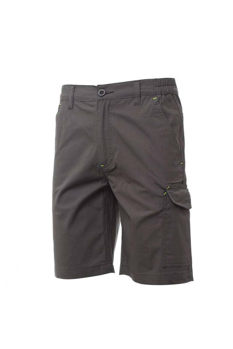 Bermuda réalisé en tissu Ripstop Stretch, léger, avec passants et élastique à la taille, fermeture à rabat avec zip et bouton en ceinture. Poches de coupe classique sur le devant, avec petite poche porte-monnaie dans la poche droite du vêtement porté et un porte-mètre latéral. Poche latérale gauche avec rabat de fermeture LOCK SYSTEM. Deux poches arrière, dont une avec rabat et velcro. Coutures triple piqûre.
