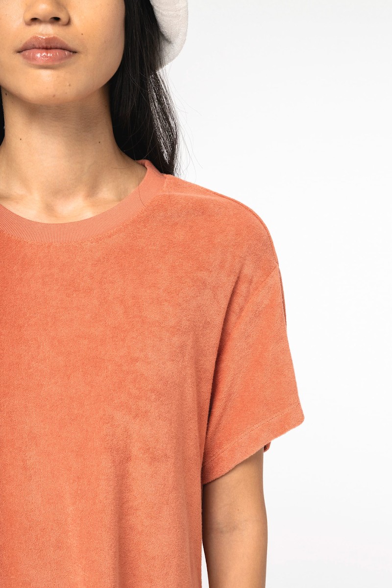 80% coton biologique / 20% polyester recyclé post-consumer. Fabriqué au Portugal. Coton peigné. Matière éponge. Coupe ajustée aux épaules tombantes. Lavé aux enzymes. Bord côte col 1 x 1. Finition encolure bande de propreté en chevrons ton sur ton. Finition double surpiqûre bas de manches et de vêtement. Demi-lune au dos. Renfort épaules.