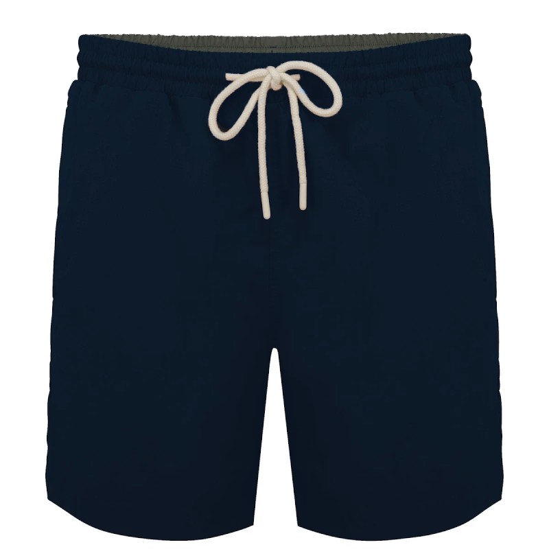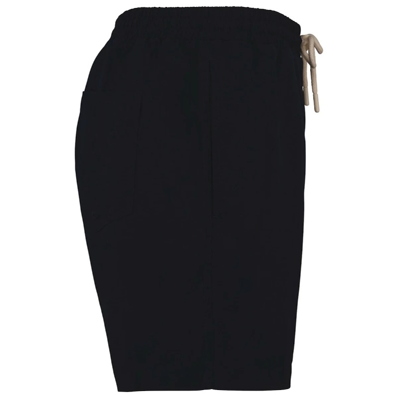 Extérieur : 100% polyamide recyclé pre-consumer. Doublure intérieure en filet : 100% polyester recyclé post-consumer. Tissu ripstop. 2 poches côtés avec une surpiqûre. Double surpiqûres couture côté, entrejambe, fourche devant et dos. Ceinture élastiquée avec cordon de serrage rond en coton biologique et embouts contrastés sur toutes les couleurs. Intérieur ceinture élastiquée contrastée sur toutes les couleurs. Slip intérieur en filet avec finition biais élastiqué. Poche plaquée au dos avec surpiqûres en ouverture poche et œillet brodé. Point de renfort ceinture milieu dos pour maintenir le cordon. Ourlet simple surpiqûre bas de vêtement.