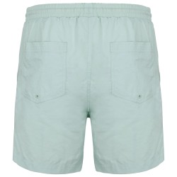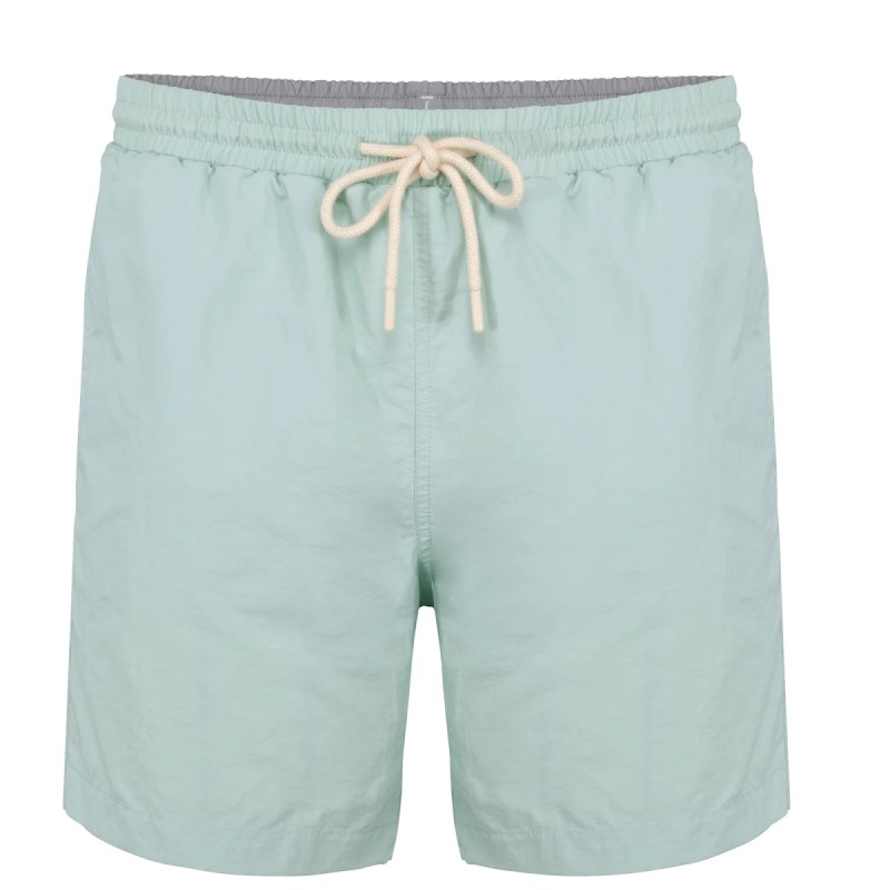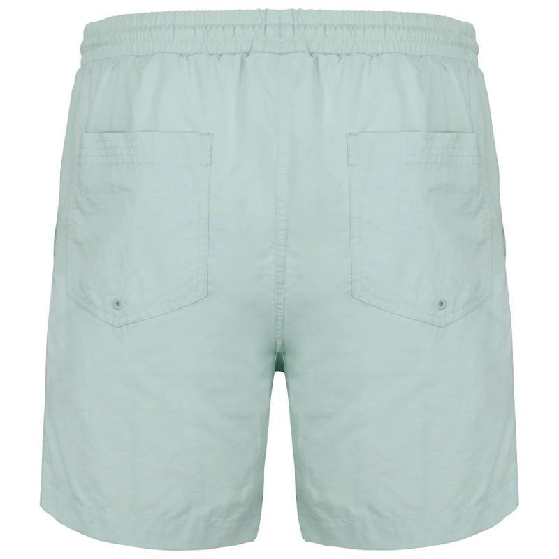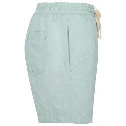 Extérieur : 100% polyamide recyclé pre-consumer. Doublure intérieure en filet : 100% polyester recyclé post-consumer. Tissu ripstop. 2 poches côtés avec une surpiqûre. Double surpiqûres couture côté, entrejambe, fourche devant et dos. Ceinture élastiquée avec cordon de serrage rond en coton biologique et embouts contrastés sur toutes les couleurs. Intérieur ceinture élastiquée contrastée sur toutes les couleurs. Slip intérieur en filet avec finition biais élastiqué. Poche plaquée au dos avec surpiqûres en ouverture poche et œillet brodé. Point de renfort ceinture milieu dos pour maintenir le cordon. Ourlet simple surpiqûre bas de vêtement.