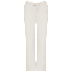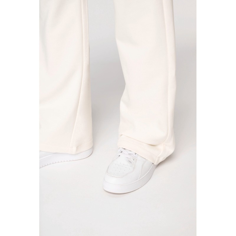 85% coton biologique / 15% polyester recyclé. Coton peigné. Coupe large. Intérieur molleton non gratté (French Terry). 3 fils LST (Low Shrinkage Terry : pré-rétréci). Lavé aux enzymes. Œillets brodés. Poches côtés minimalistes. Ourlet simple surpiqûre bas de vêtement. Ceinture élastiquée avec surpiqûres, cordon de serrage plat en coton biologique et embout en métal recyclé.