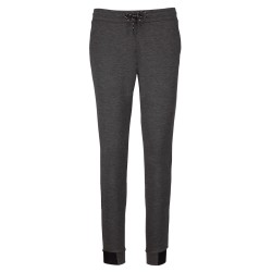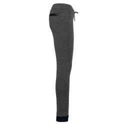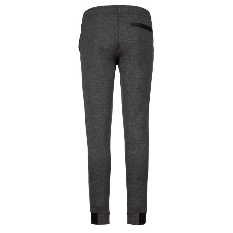 94% polyester/ 6% élasthanne (79% polyester/ 15% viscose/ 6% élasthanne pour coloris chiné). Matière ultra confortable. Ceinture élastiquée avec cordon de serrage bicolore finition embout plastique. 2 poches devant doublure jersey 65% polyester/ 35% viscose et 1 poche arrière zippée finition thermosoudée. Coupe moderne et ajustée. Bas de jambes resserré avec une partie élastiquée contrastée Black sur tous les coloris et Dark Grey sur le Ash Heather.