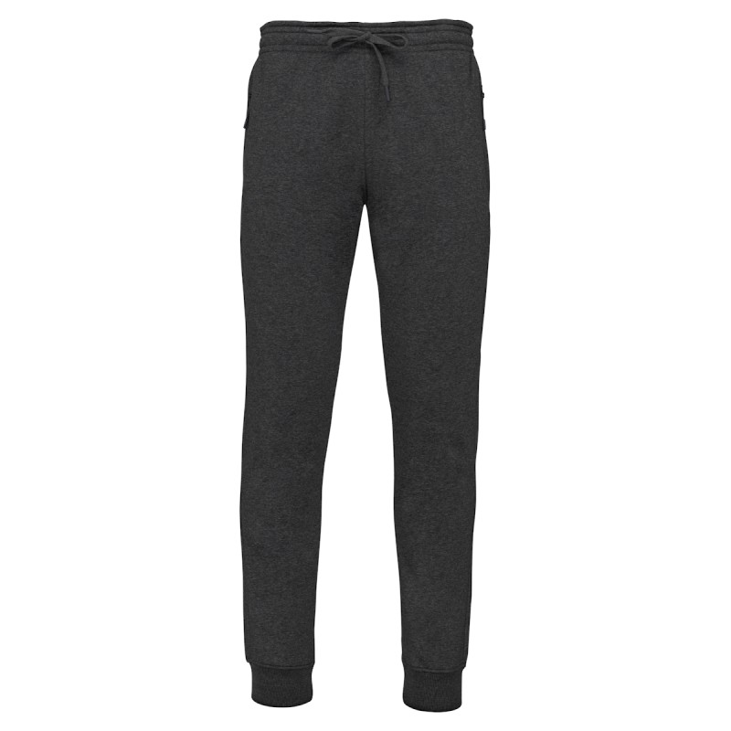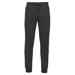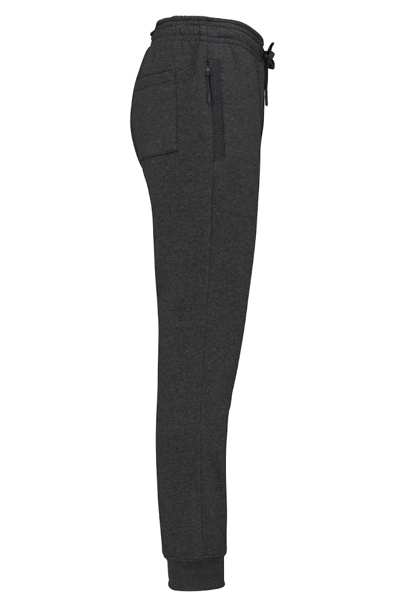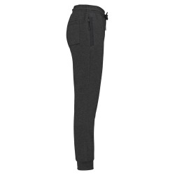 65% polyester / 35% coton. Molleton gratté. Ceinture élastiquée avec cordon de serrage ton sur ton. Pour plus de confort, finition intérieur taille par bande élastique au toucher doux, contrastée avec liseré fluorescent. 2 poches côtés fantaisie avec fermeture à glissière, sac de poche en maille filet et une poche téléphone contrastée fluorescente. 1 poche plaquée arrière. Bas de jambe resserré par un bord-côte 2 x 2.