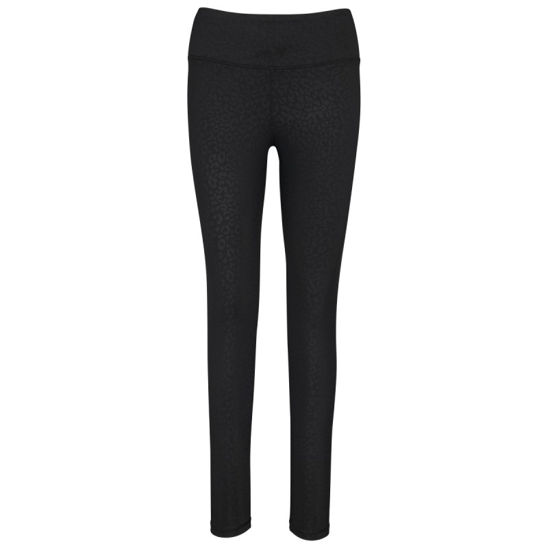 81% polyester recyclé / 19% élasthanne. Tissu au toucher doux avec un motif imprimé ton sur ton qui donne de léger reflets. Coupe skinny. Large ceinture pour un confort optimal. Petite poche de rangement à l'intérieur de la ceinture devant. Surpiqûres plates ton sur ton à la ceinture, entrejambes et bas de vêtement.