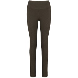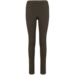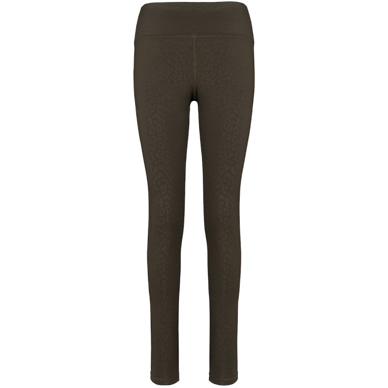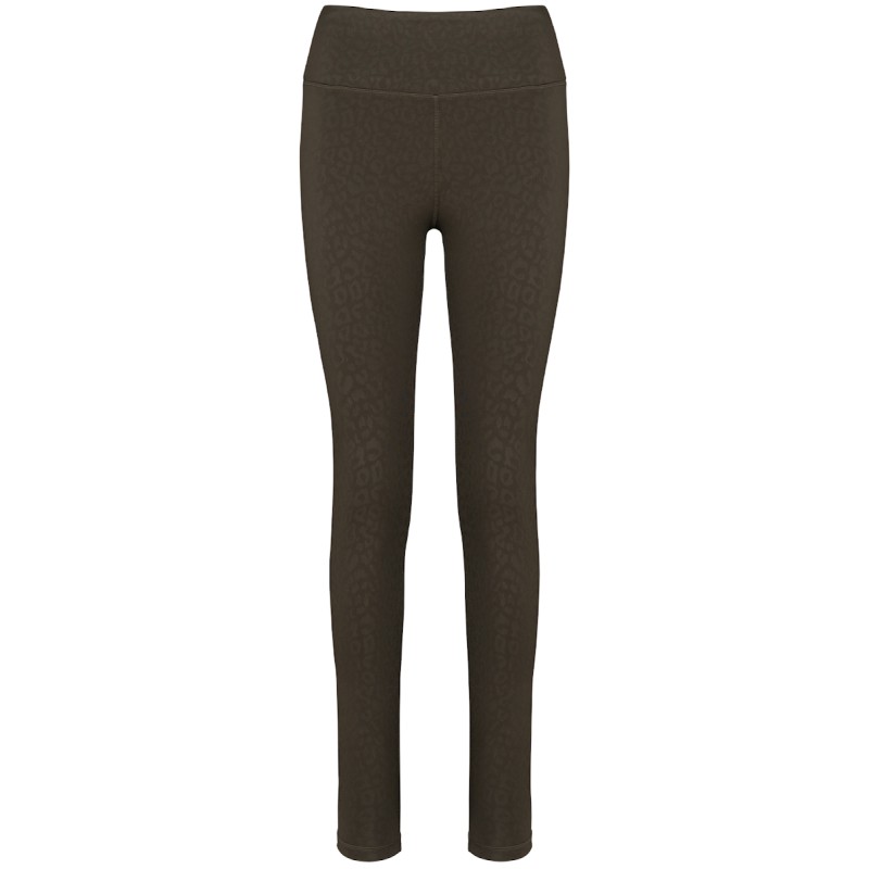 81% polyester recyclé / 19% élasthanne. Tissu au toucher doux avec un motif imprimé ton sur ton qui donne de léger reflets. Coupe skinny. Large ceinture pour un confort optimal. Petite poche de rangement à l'intérieur de la ceinture devant. Surpiqûres plates ton sur ton à la ceinture, entrejambes et bas de vêtement.