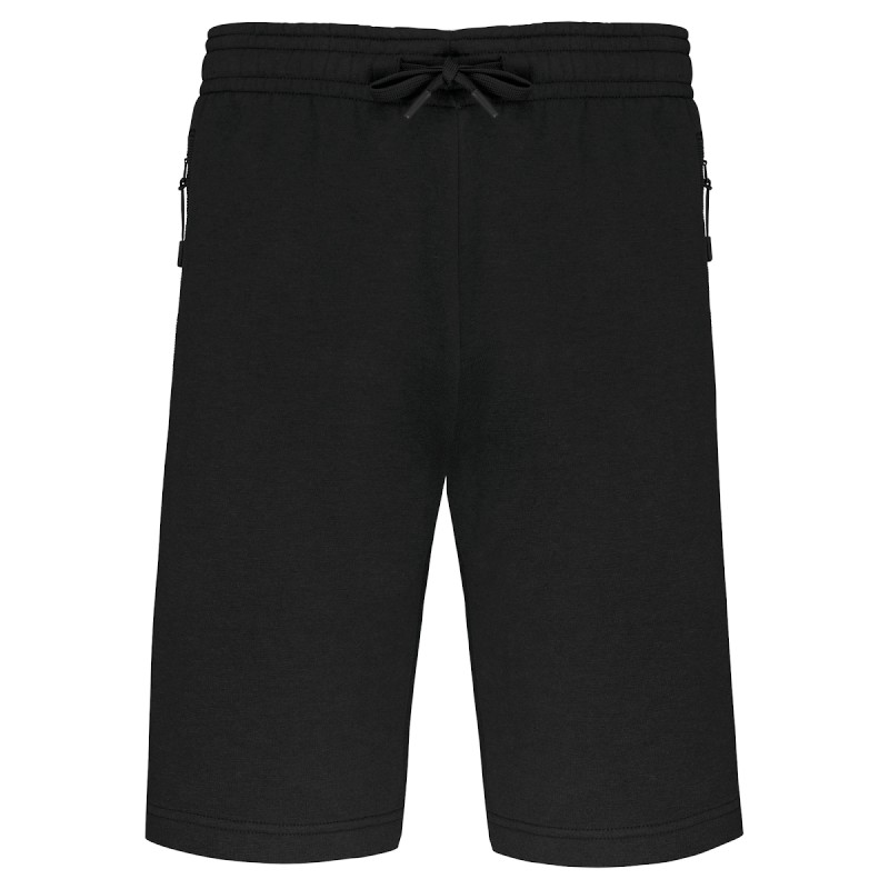 65% polyester / 35% coton. Molleton gratté. Ceinture élastiquée avec cordon de serrage ton sur ton. Pour plus de confort, finition intérieur taille par bande élastique au touché doux, contrastée avec liseré fluorescent. 2 poches côtés fantaisies avec fermeture à glissière, sac de poche en maille filet et une poche téléphone contrastée fluorescente. 1 poche plaquée arrière. Finition double aiguille au bas de jambe.