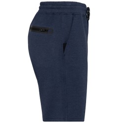 Coloris unis: 94% polyester/ 6% élasthanne. Coloris chinés : 79% polyester/ 15% viscose/ 6% élasthanne. Matière ultra confortable. Ceinture élastiquée avec cordon de serrage bicolore finition embout plastique et œillets métalliques. 2 poches devant doublées jersey et 1 poche arrière zippée, finition thermosoudée contrastée. Finition poches avec une partie élastiquée contrastée Black sur tous les coloris et Dark Grey sur le Black et le Ash Heather. Finition double aiguille sur bas de vêtement. Etiquette de marque Tear-away.