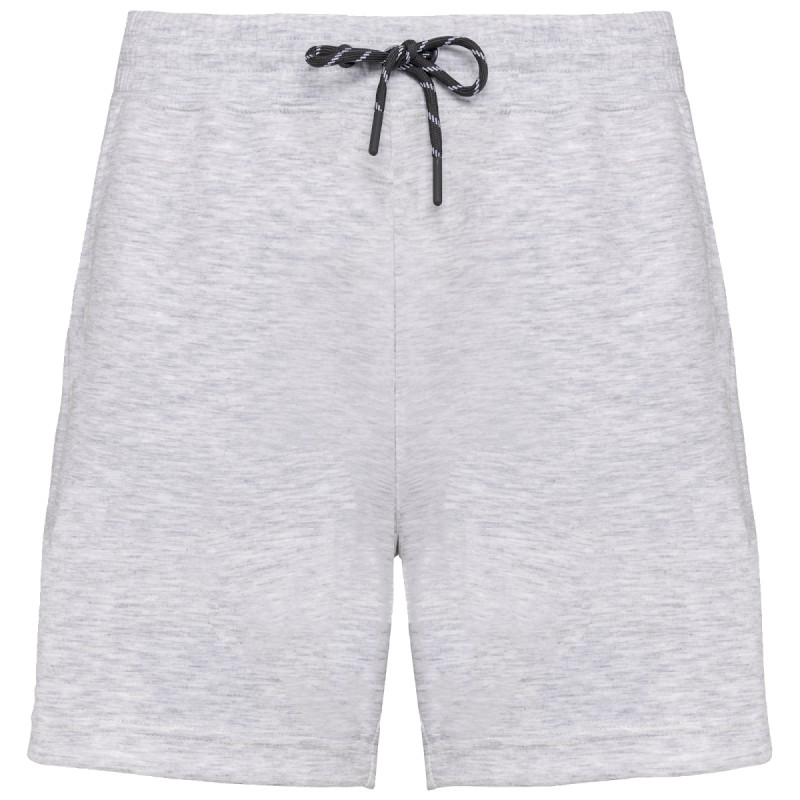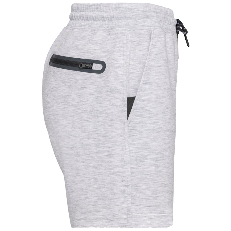 Coloris unis: 94% polyester/ 6% élasthanne. Coloris chinés : 79% polyester/ 15% viscose/ 6% élasthanne. Matière ultra confortable. Ceinture élastiquée avec cordon de serrage bicolore finition embout plastique et œillets métalliques. 2 poches devant doublées jersey et 1 poche arrière zippée, finition thermosoudée contrastée. Finition poches avec une partie élastiquée contrastée Black sur tous les coloris et Dark Grey sur le Black et Ash Heather. Finition double aiguille sur bas de vêtement. Etiquette de marque Tear-away.
