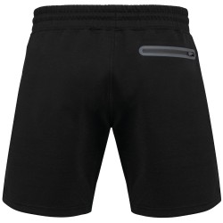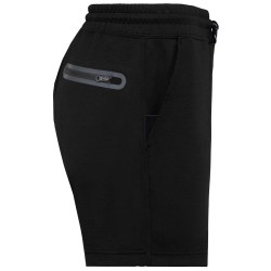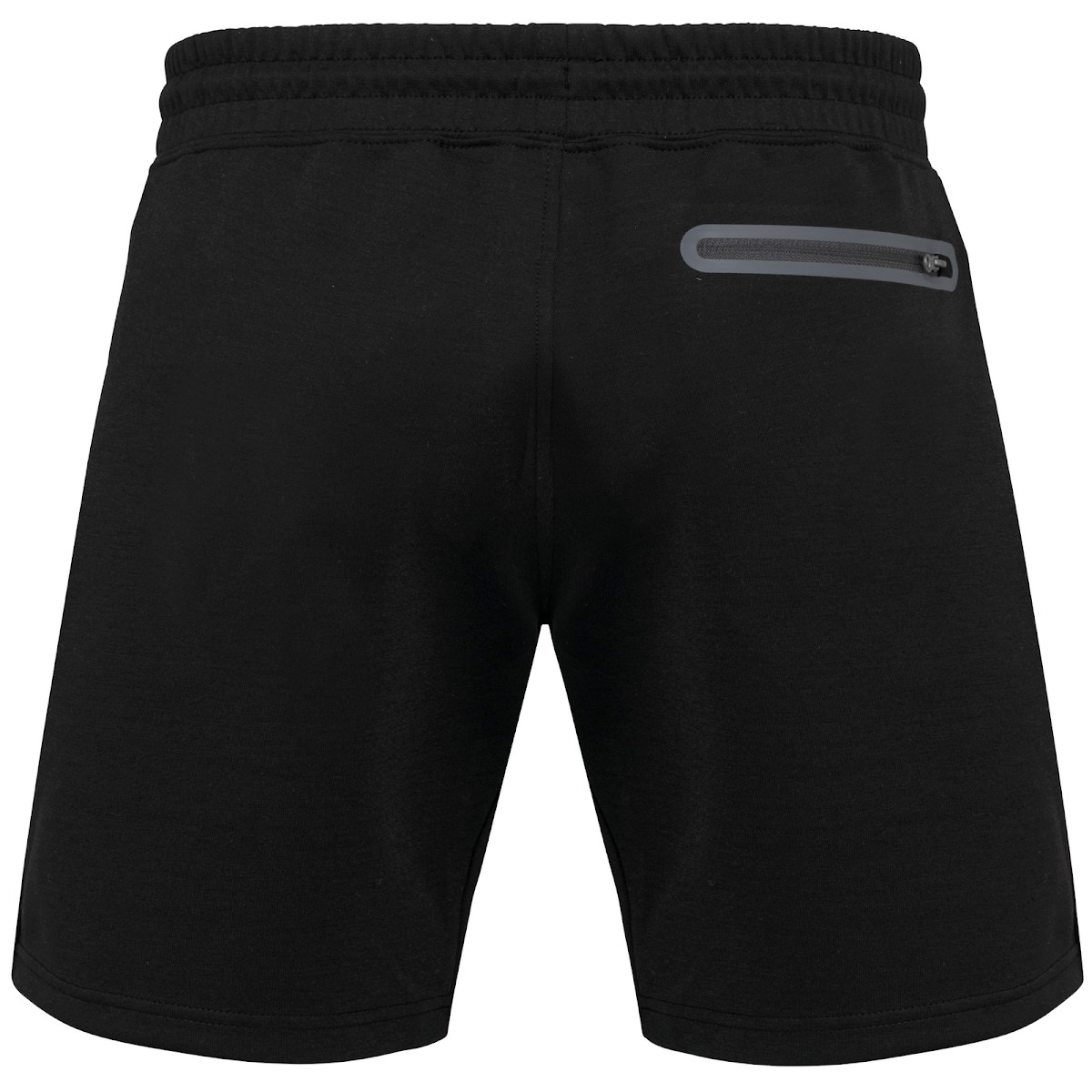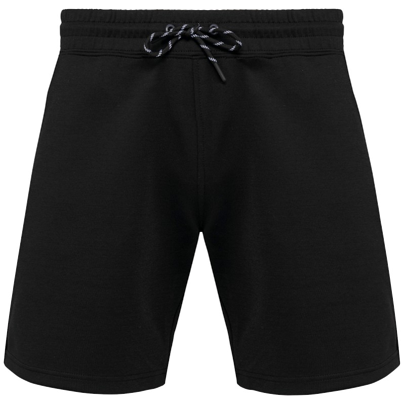 Coloris unis: 94% polyester/ 6% élasthanne. Coloris chinés : 79% polyester/ 15% viscose/ 6% élasthanne. Matière ultra confortable. Ceinture élastiquée avec cordon de serrage bicolore finition embout plastique et œillets métalliques. 2 poches devant doublées jersey et 1 poche arrière zippée, finition thermosoudée contrastée. Finition poches avec une partie élastiquée contrastée Black sur tous les coloris et Dark Grey sur le Black et Ash Heather. Finition double aiguille sur bas de vêtement. Etiquette de marque Tear-away.