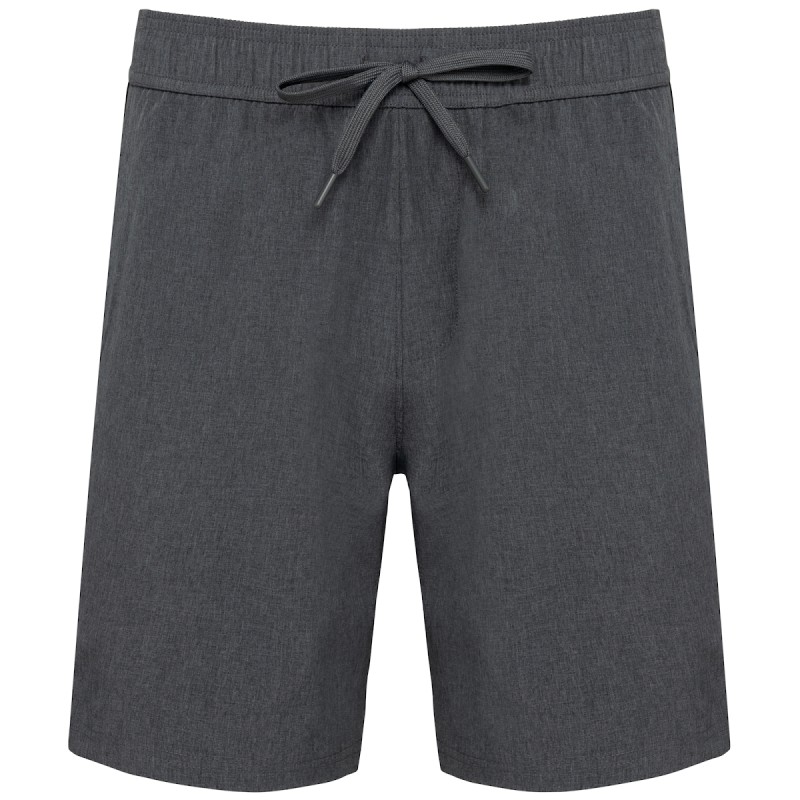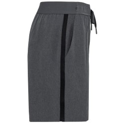 92% polyester/ 8% élasthanne. Matière ultra confortable. 2 poches devant. 2 bandes maille filet contrastées et appliquées sur les côtés. Ceinture élastiquée en 2 parties avec cordon de serrage plat et finition embout plastique. Finition double aiguille sur bas de vêtement. Etiquette de marque Tear-away.