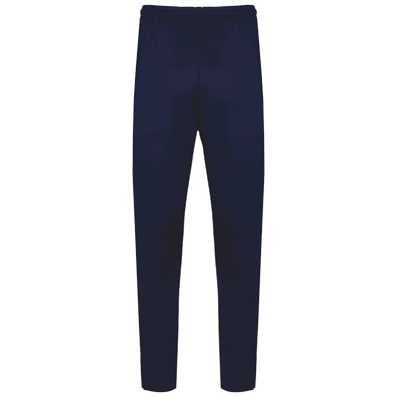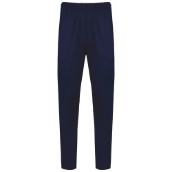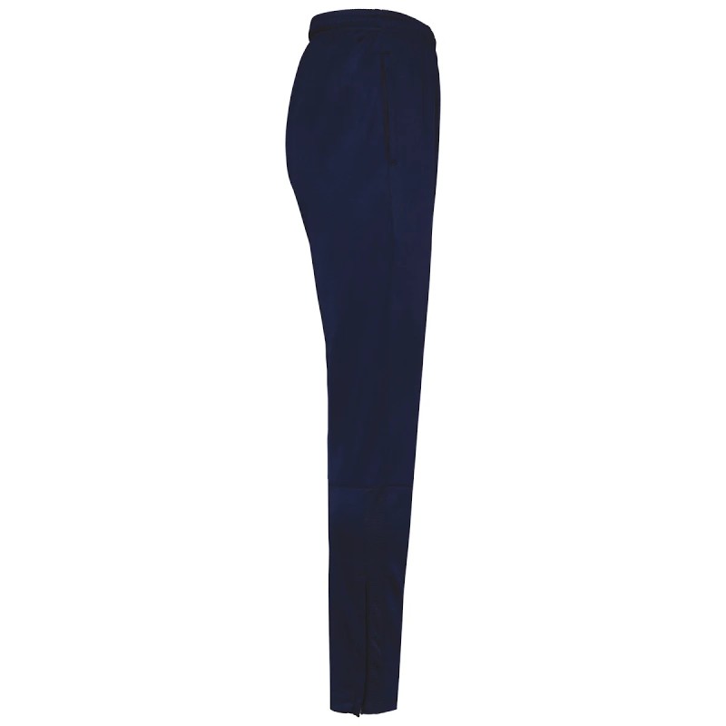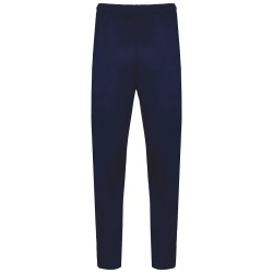 96% polyester recyclé / 4% élasthanne. Coupe droite. 2 poches côtés zippées. Ceinture élastiquée avec cordon de serrage rond et embout caoutchouc placé à l'intérieur de la ceinture. Découpe sur le bas de jambe avec inserts en tissu texturé sur le côté. Bas de jambe zippés avec ourlet double aiguille. Etiquette de marque détachable pour faciliter la personnalisation.