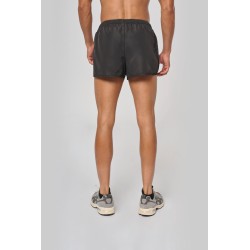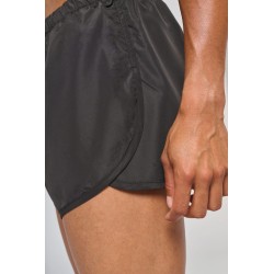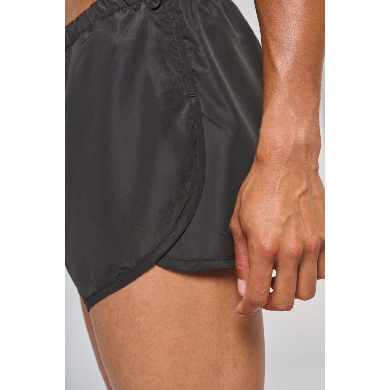 100% polyester micro 50D. Tissu léger. Taille élastiquée avec cordon de serrage. Découpes ouvertes sur les côtés. Slip intégré en maille filet. Petite poche intérieure à l'avant. Finition bordée bas de vêtement.