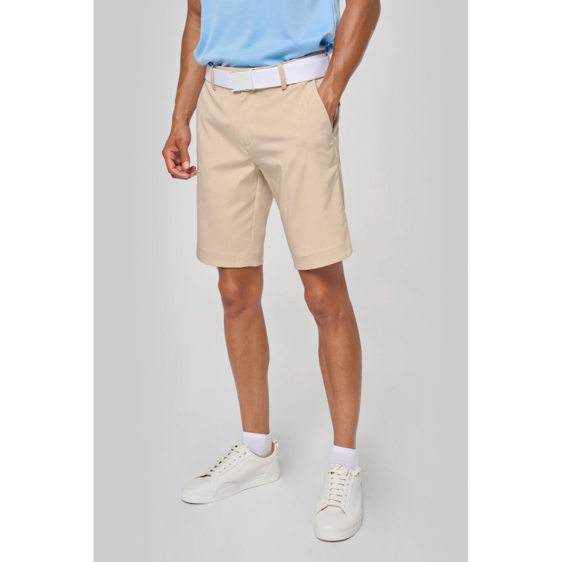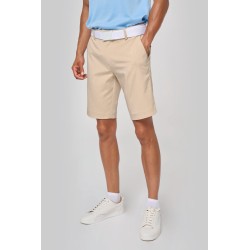 96% polyester / 4% élasthanne. Matière souple et déperlante pour un confort optimal. Coupe ajustée. Ceinture avec passants, 2 poches profondes côtés et 2 poches arrière passepoilées avec rabat.