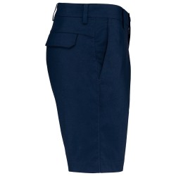 96% polyester / 4% élasthanne. Matière souple et déperlante pour un confort optimal. Coupe ajustée. Ceinture avec passants, 2 poches profondes côtés et 2 poches arrière passepoilées avec rabat.