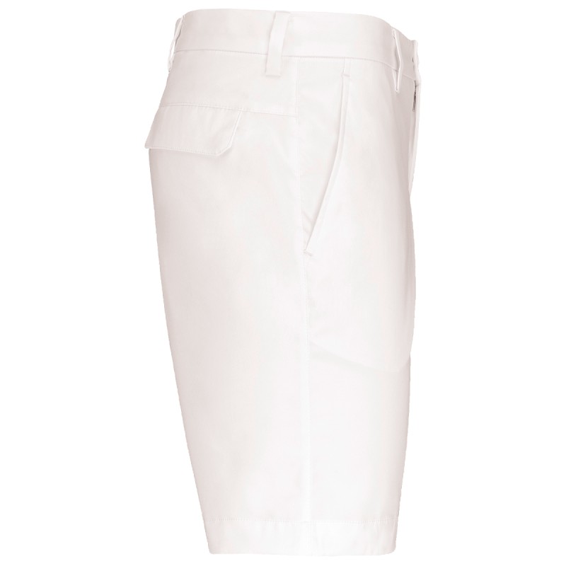 96% polyester / 4% élasthanne. Matière souple et déperlante pour un confort optimal. Coupe ajustée. Ceinture avec passants, 2 poches profondes côtés et 2 poches arrière passepoilées avec rabat.