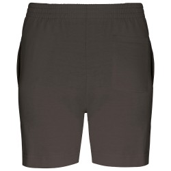 100% coton (90% coton / 10% viscose pour coloris chiné). Maille prérétréci ring-spun. 2 poches côtés et 1 poche plaquée au dos. Taille élastiquée. Finition double aiguille au bas de jambes.