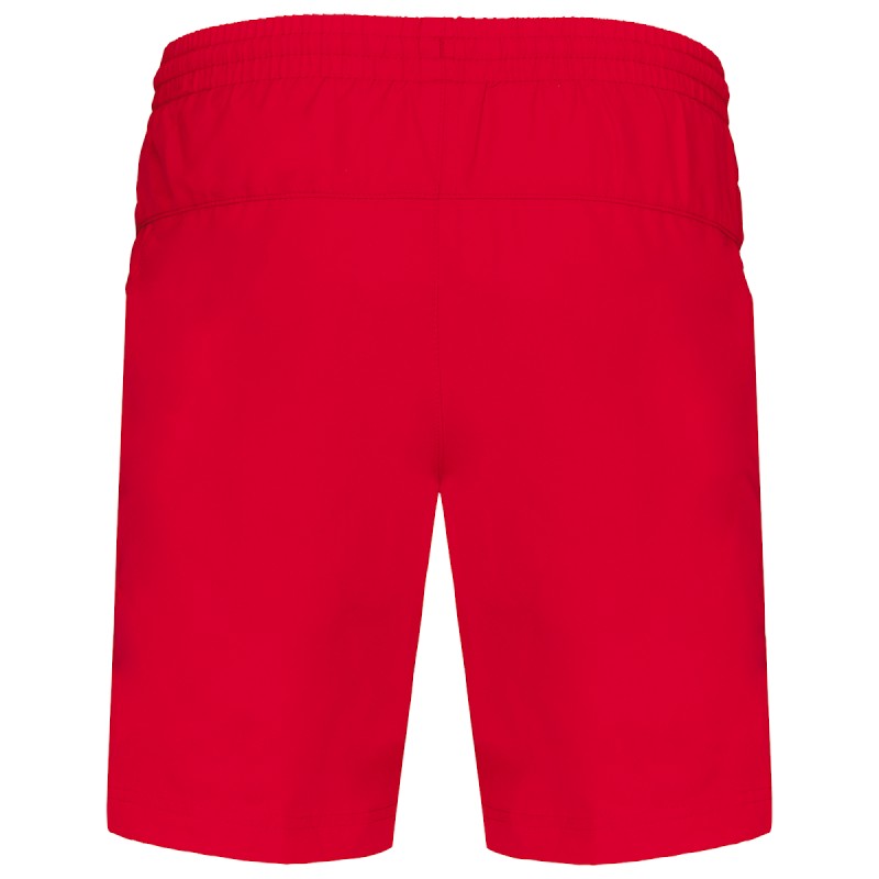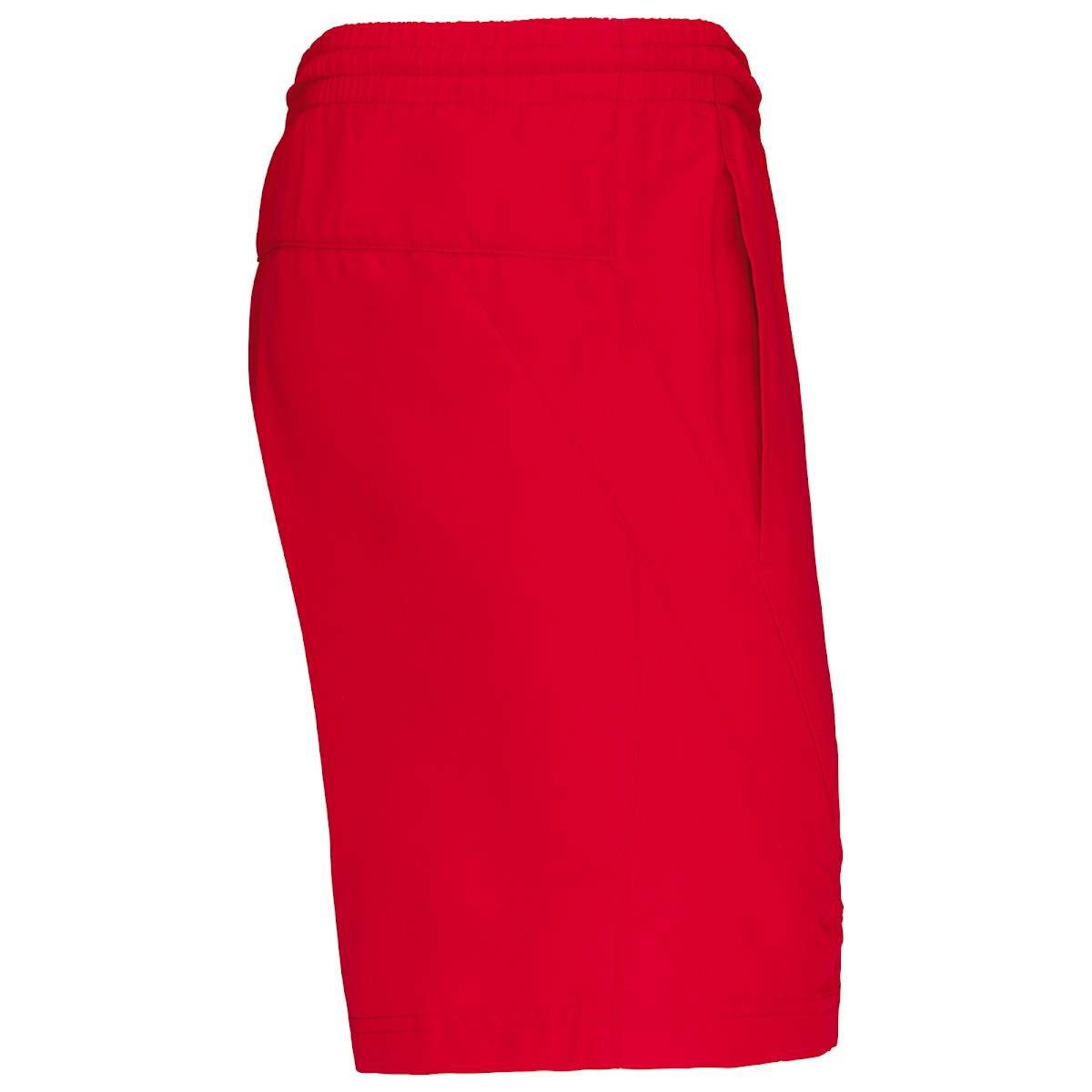 100% polyester à séchage rapide. 2 poches côtés. Taille élastiquée avec cordon de serrage. Slip intégré en maille filet. Découpe côté ton sur ton.