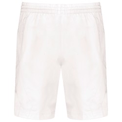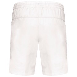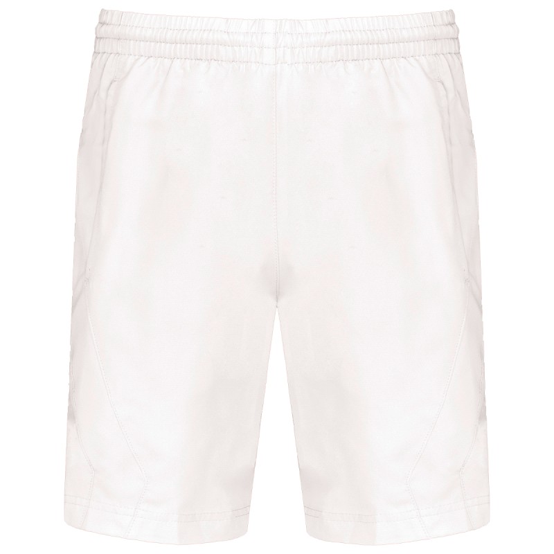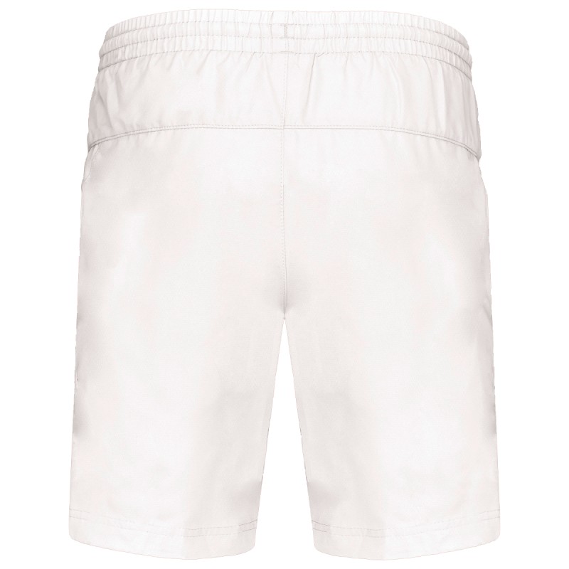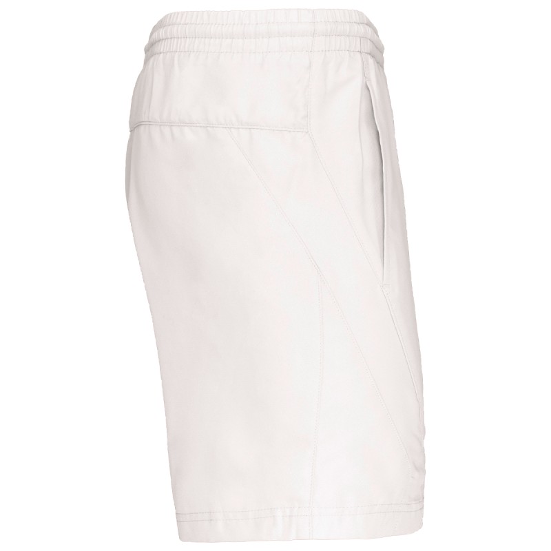 100% polyester à séchage rapide. 2 poches côtés. Taille élastiquée avec cordon de serrage. Slip intégré en maille filet. Découpe côté ton sur ton.