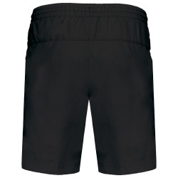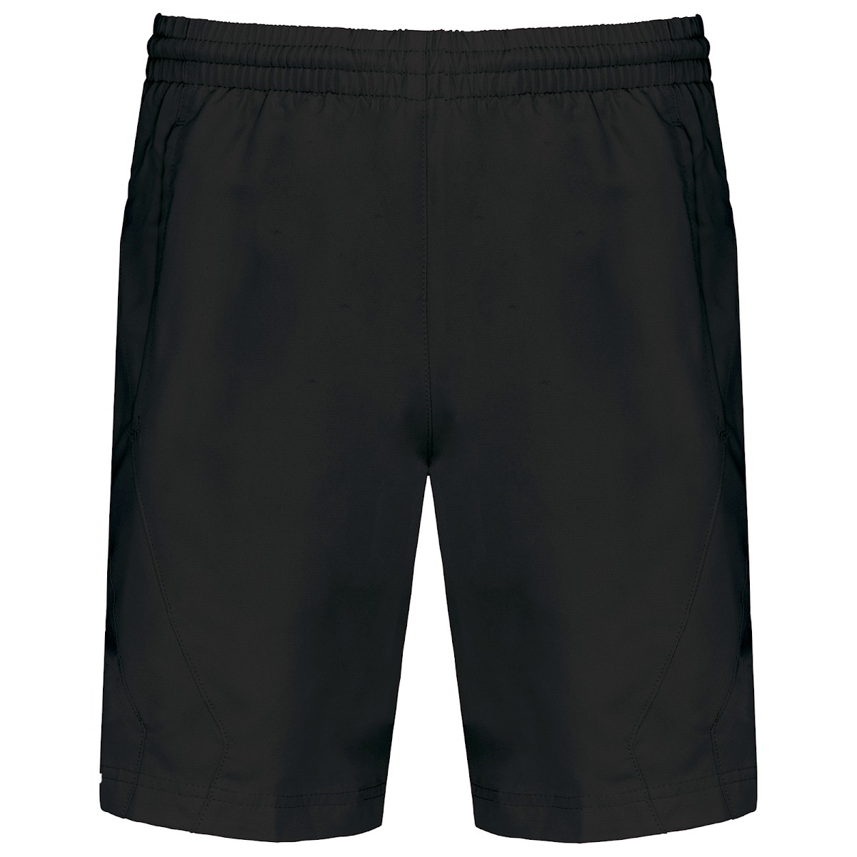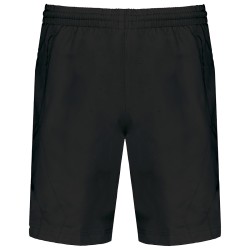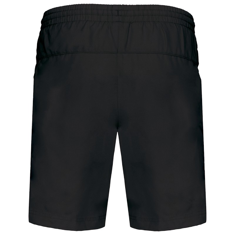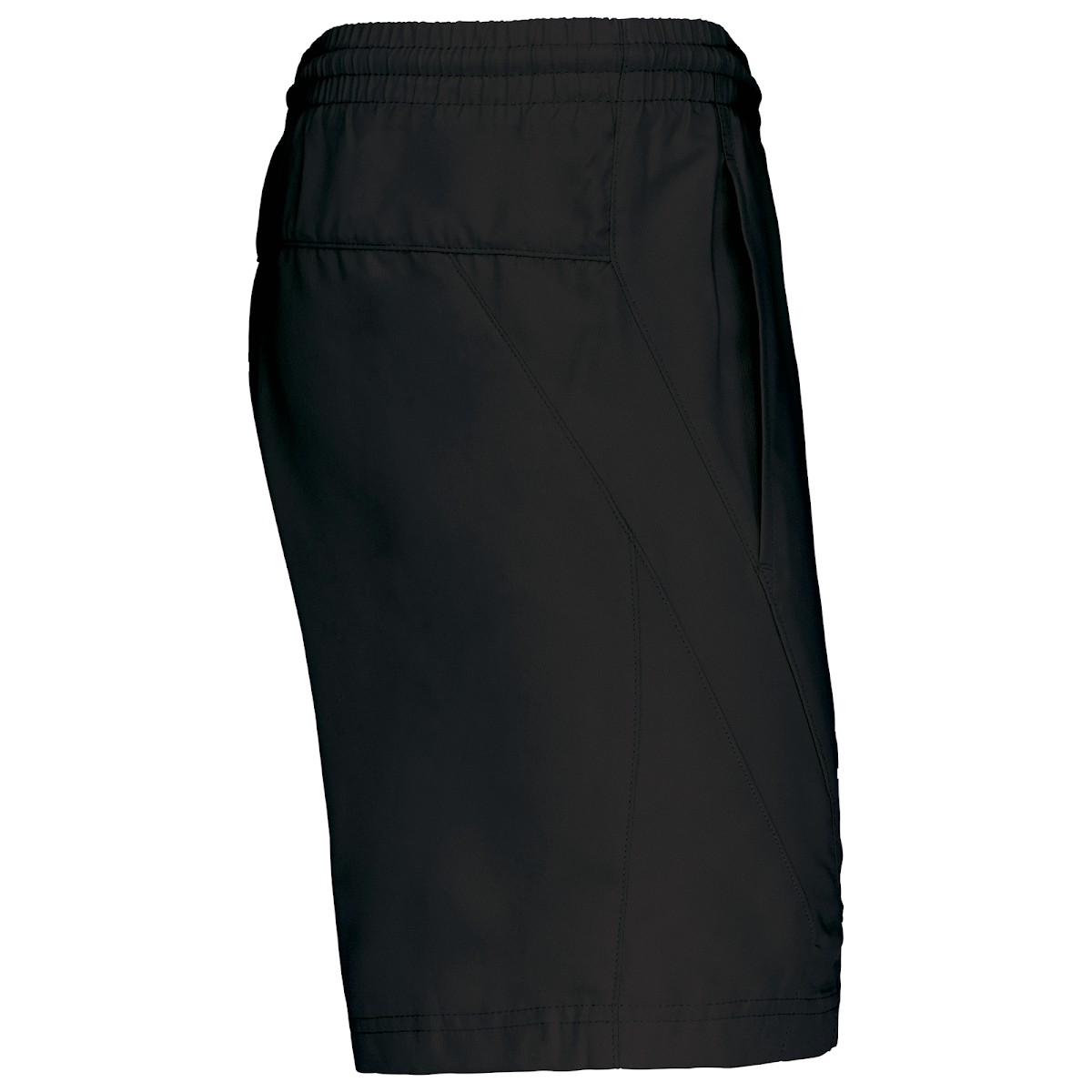 100% polyester à séchage rapide. 2 poches côtés. Taille élastiquée avec cordon de serrage. Slip intégré en maille filet. Découpe côté ton sur ton.