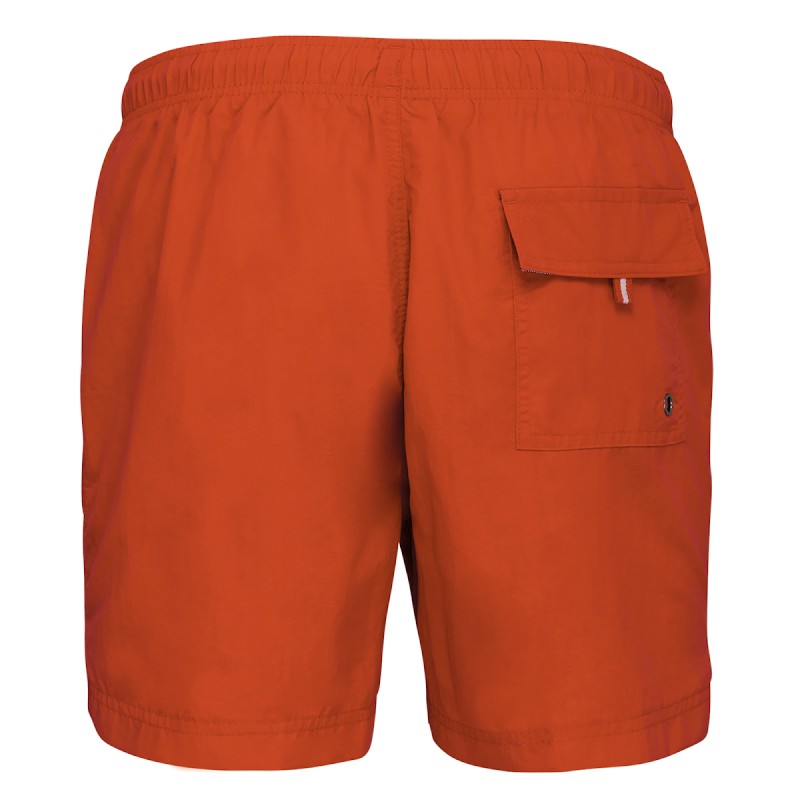 Extérieur : 100% polyamide 105g/m². Slip intégré en maille filet 100% polyester 65g/m². Doublure ceinture polycoton 80g/m². Tissu léger. Coupe mode. 2 poches latérales et 1 poche arrière avec oeillet, rabat et bande auto-agrippante. Ceinture intérieure fantaisie et élastiquée avec cordon de serrage.