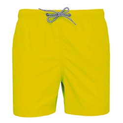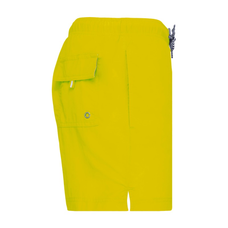 Extérieur : 100% polyamide 105g/m². Slip intégré en maille filet 100% polyester 65g/m². Doublure ceinture polycoton 80g/m². Tissu léger. Coupe mode. 2 poches latérales et 1 poche arrière avec oeillet, rabat et bande auto-agrippante. Ceinture intérieure fantaisie et élastiquée avec cordon de serrage.