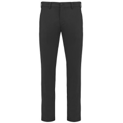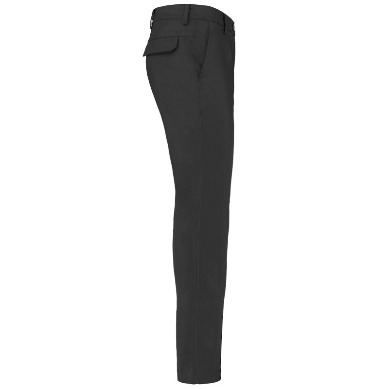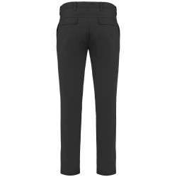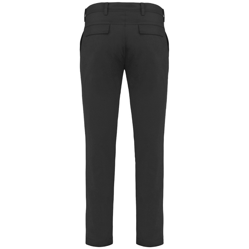 96% polyester / 4% élasthanne. Matière souple et déperlante pour un confort optimal. Coupe ajustée. Ceinture avec passants, 2 poches profondes côtés et 2 poches arrière passepoilées avec rabat.