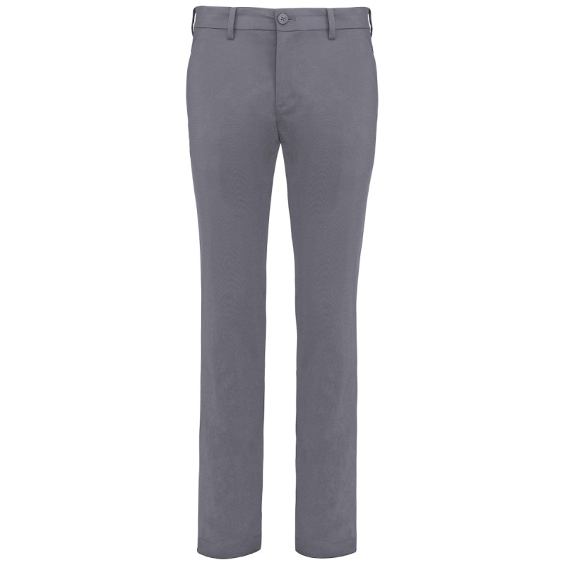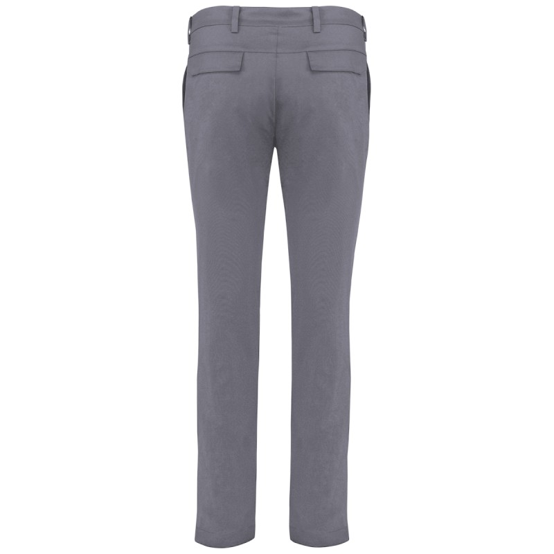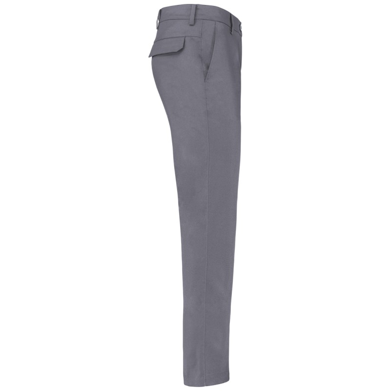96% polyester / 4% élasthanne. Matière souple et déperlante pour un confort optimal. Coupe élégante et ajustée. Ceinture avec passants, 2 poches profondes côtés et 2 poches arrière passepoilées avec rabat.