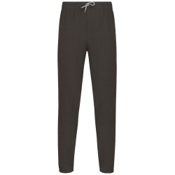 100% coton (Oxford grey : 90% coton / 10% viscose). Tissu souple et léger. Ceinture élastiquée avec cordon de serrage intérieur + cordon gris extérieur interchangeable. 2 poches côtés et 1 poche arrière. Bas élastiqué.