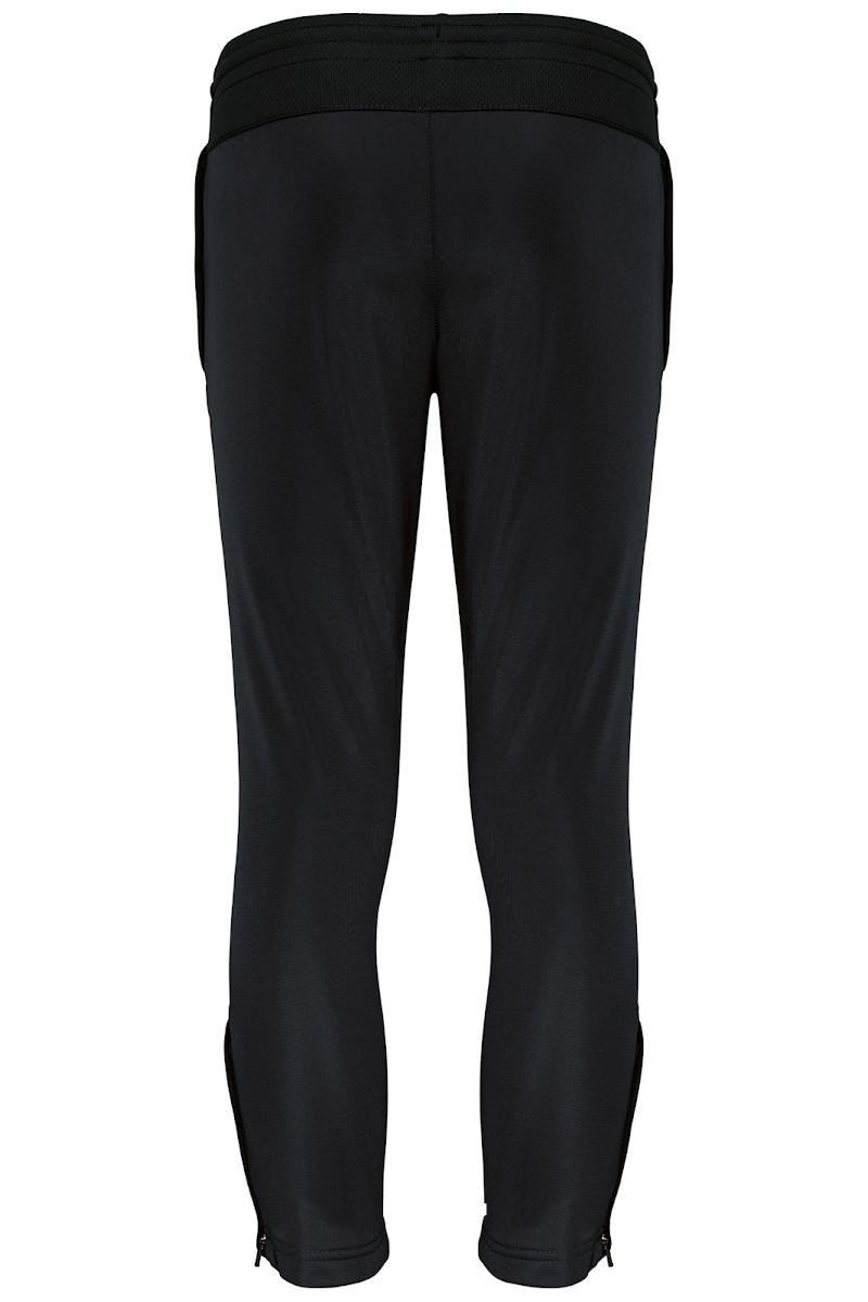 100% polyester tricot. Empiècement dos en mesh pour une meilleure ventilation. 2 poches côtés zippées. Ceinture élastiquée avec cordon de serrage. Bas de jambe zippé. Coupe ajustée moderne.