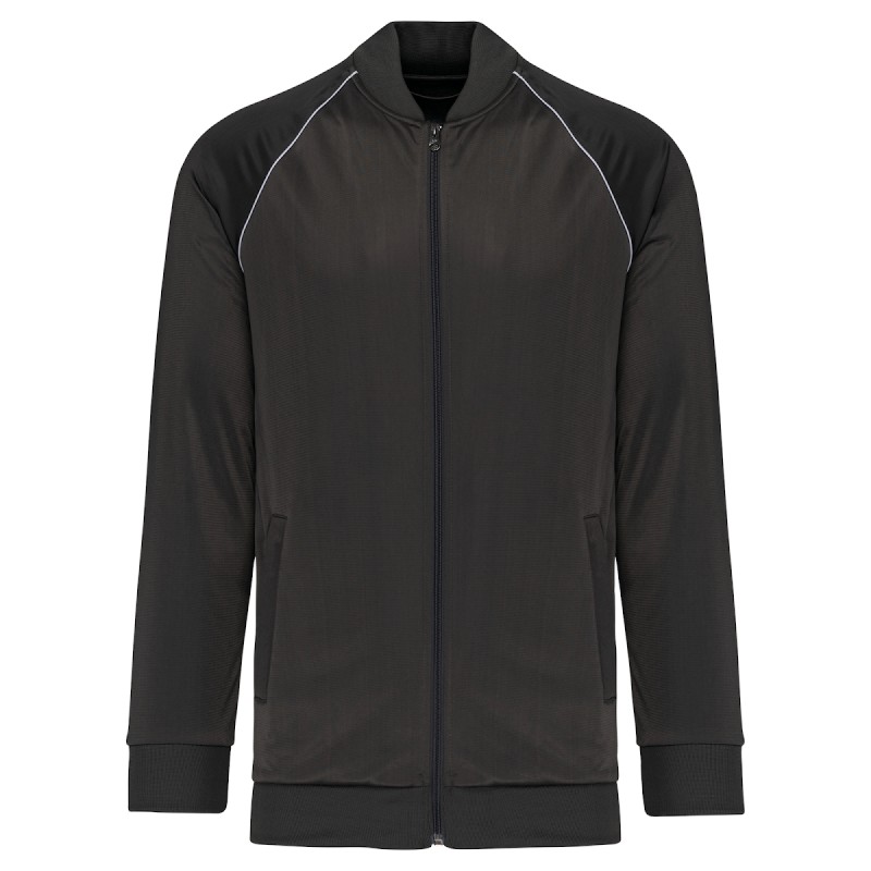 100% polyester tricot. Coupe droite. Fermeture zippée nylon ton sur ton. Manches raglan avec liseré contrasté. Bord-côte 1x1 au col, bas de manches et de vêtement. 2 poches latérales zippées. Etiquette de marque détachable pour faciliter la personnalisation.