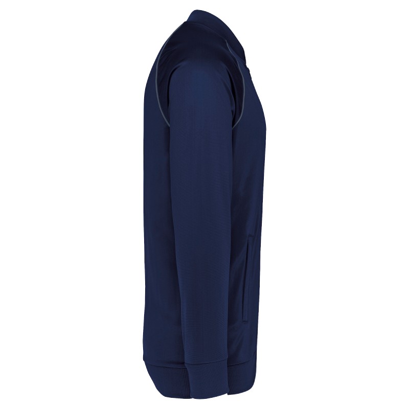 100% polyester tricot. Coupe droite. Fermeture zippée nylon ton sur ton. Manches raglan avec liseré contrasté. Bord-côte 1x1 au col, bas de manches et de vêtement. 2 poches latérales zippées. Etiquette de marque détachable pour faciliter la personnalisation.